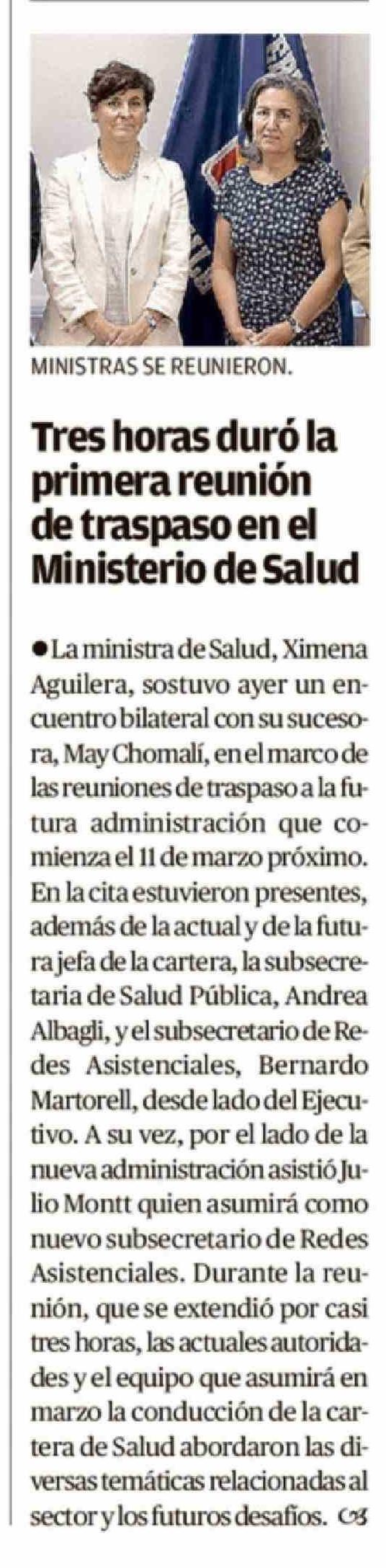 Tres horas duro la primera reunión de traspaso en el Ministerio de Salud