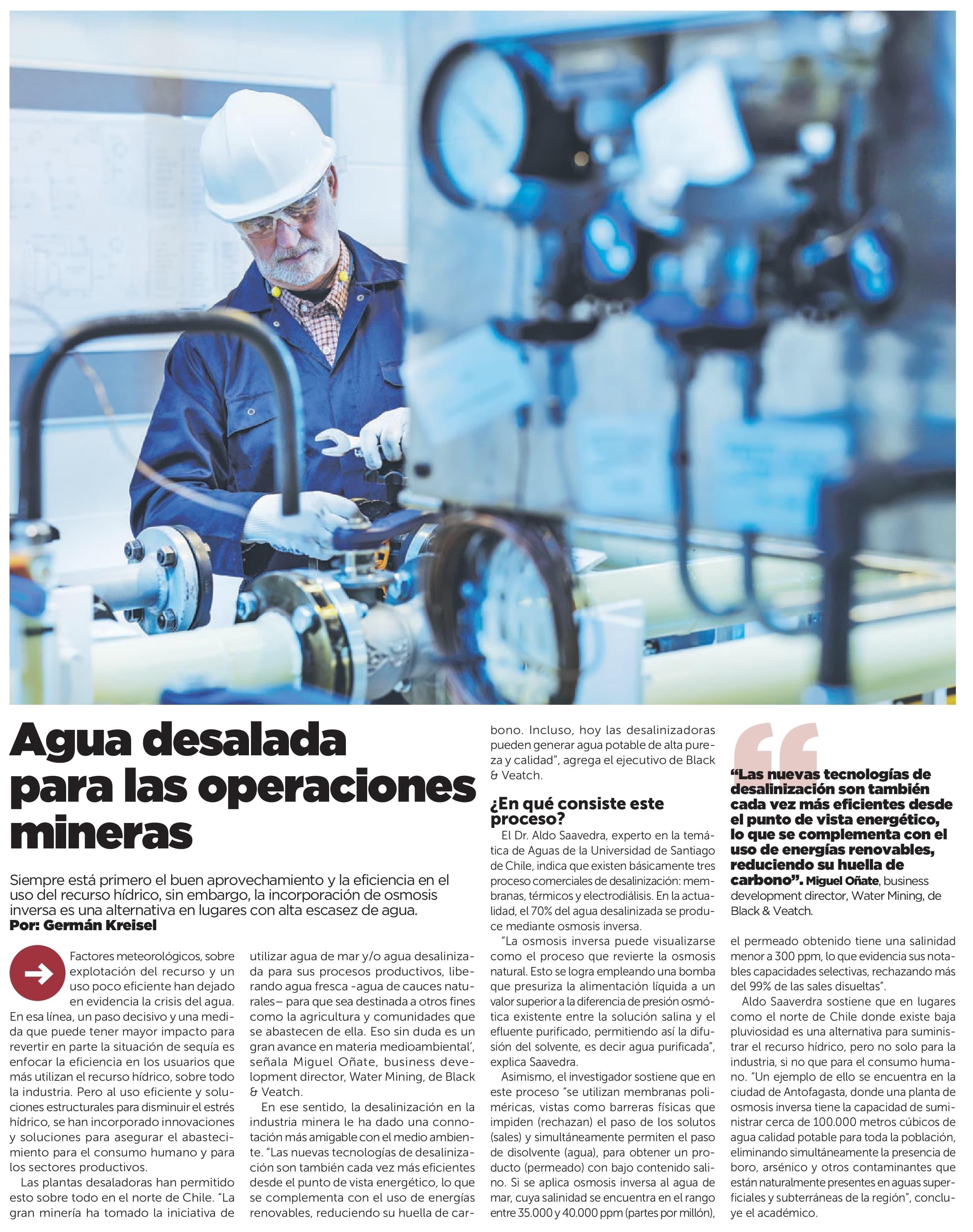 Agua desalada para las operaciones mineras