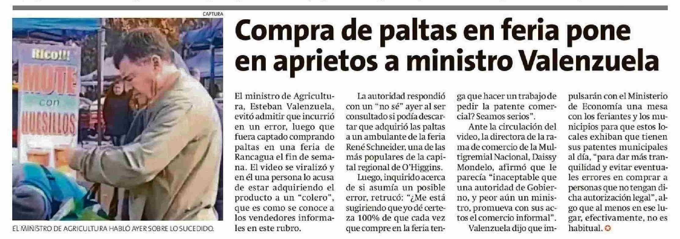 Compra de paltas en feria pone en aprietos a ministro Valenzuela