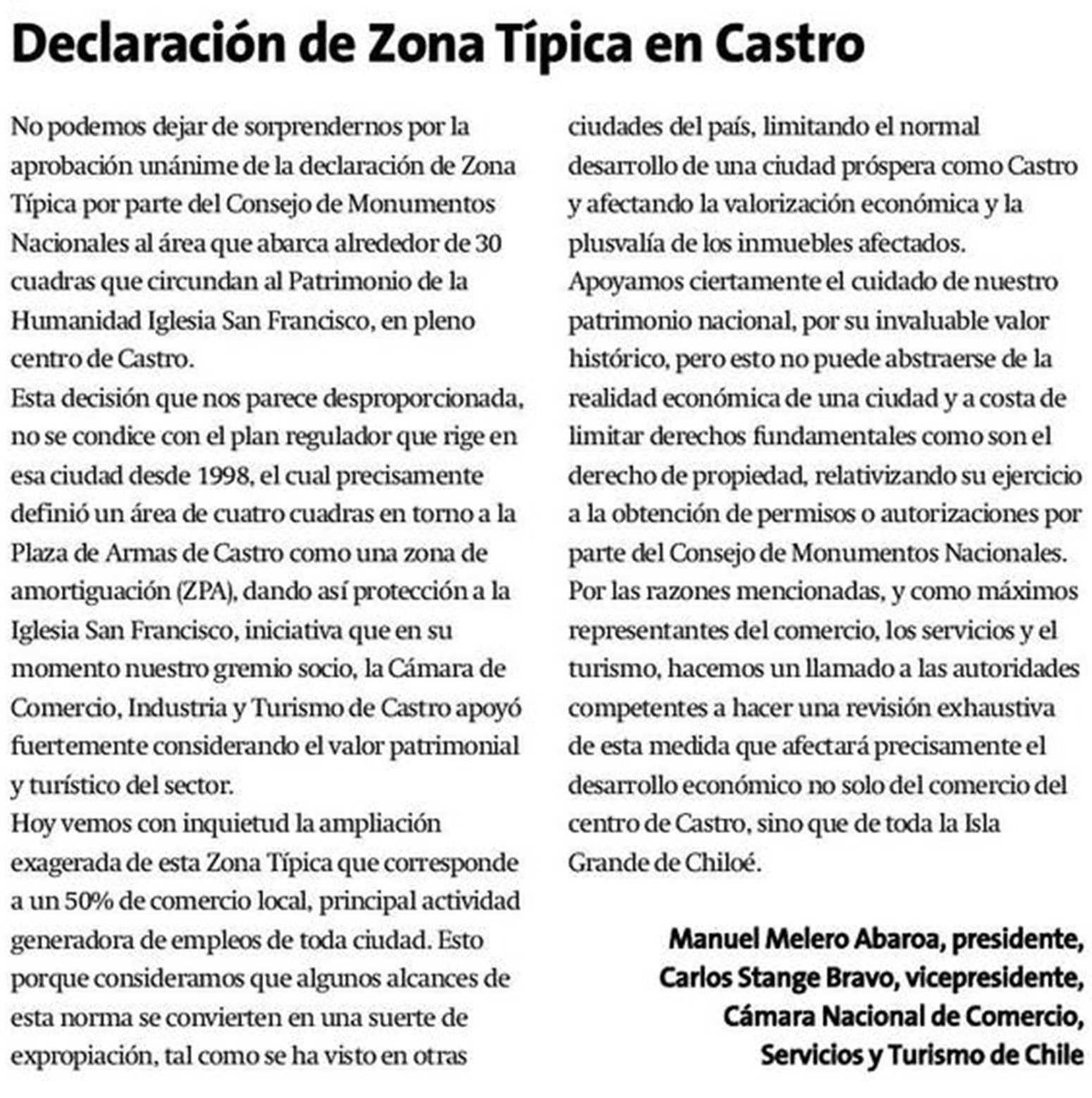 Declaración de Zona Típica en Castro