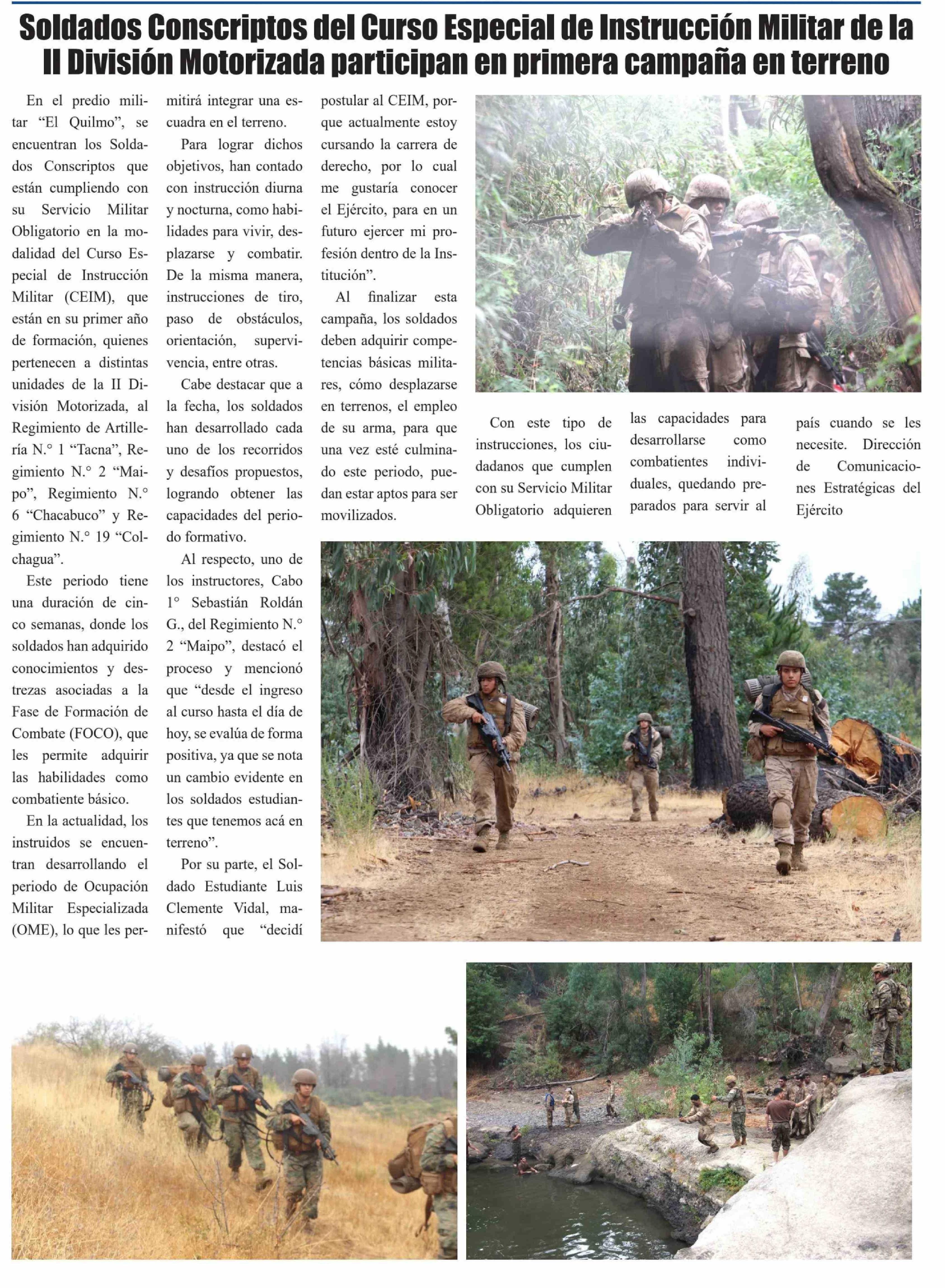 Soldados Conscriptos del Curso Especial de Instrucción Militar de la Il División Motorizada participan en primera campaña en terreno
