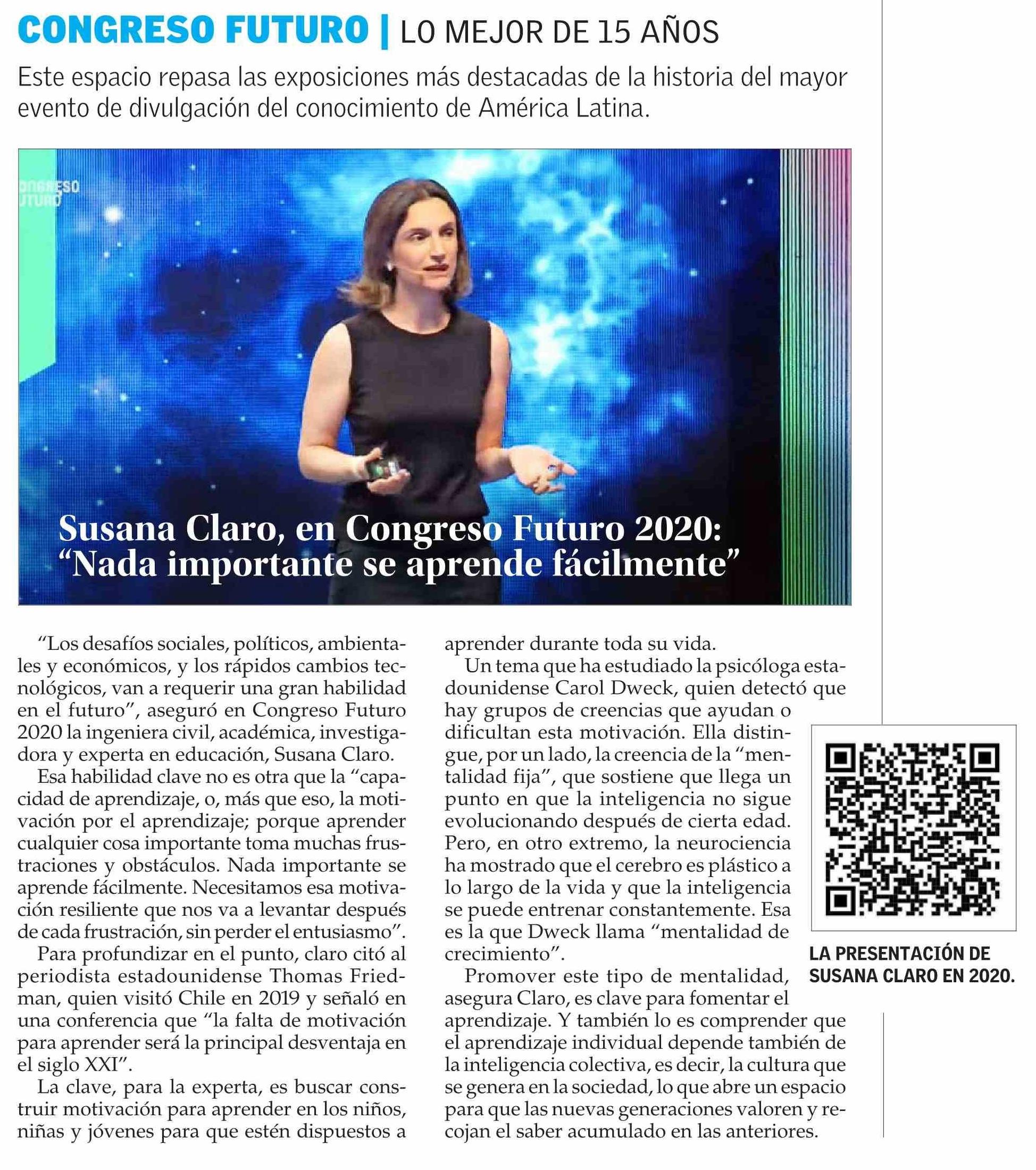 Susana Claro, en Congreso Futuro 2020: “Nada importante se aprende fácilmente”