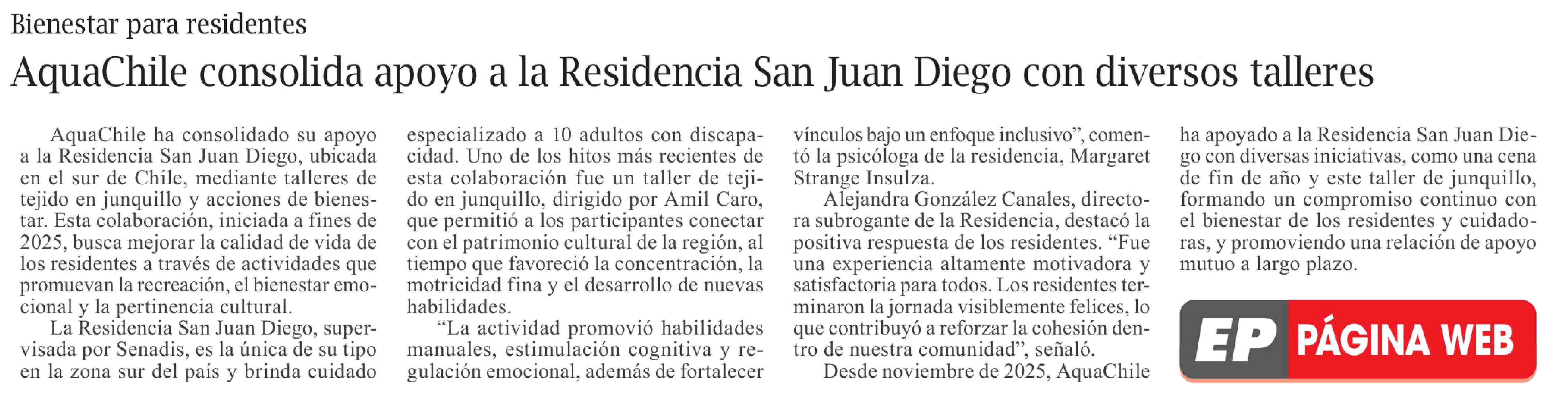 AquaChile consolida apoyo a la Residencia San Juan Diego con diversos talleres