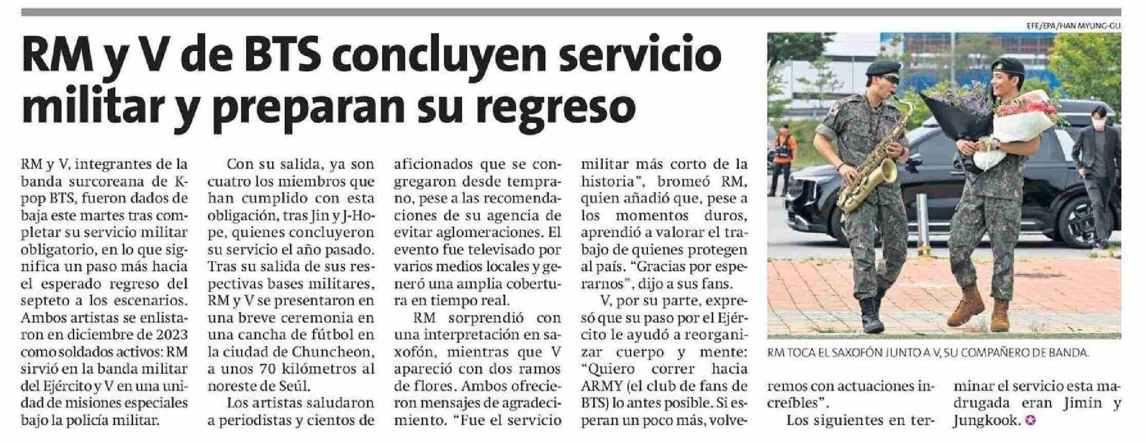 RM y V de BTS concluyen servicio militar y preparan su regreso