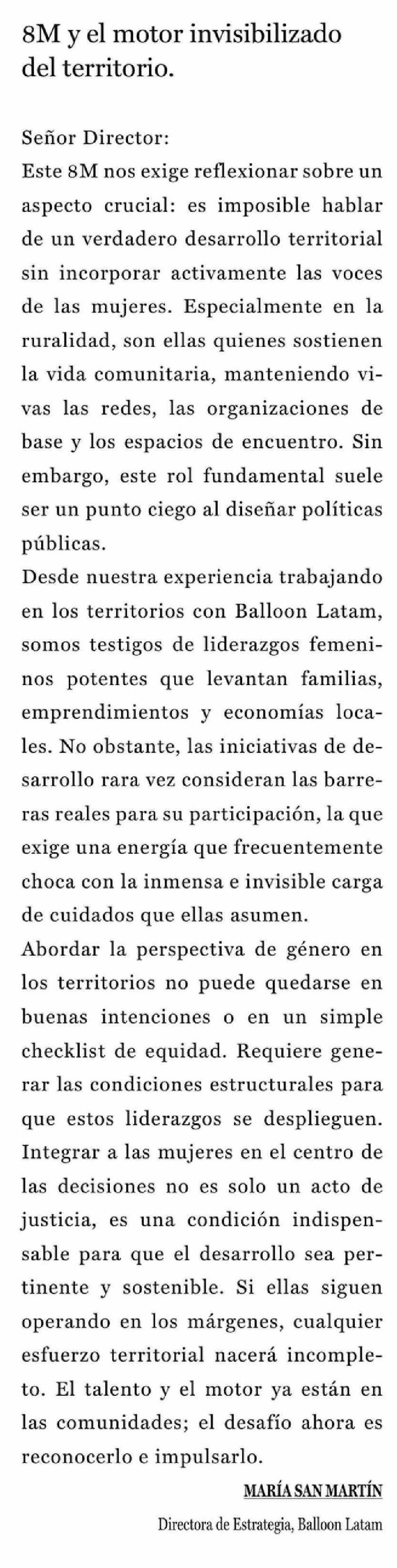 Título: Cartas: 8M y el motor invisibilizado del territorio.