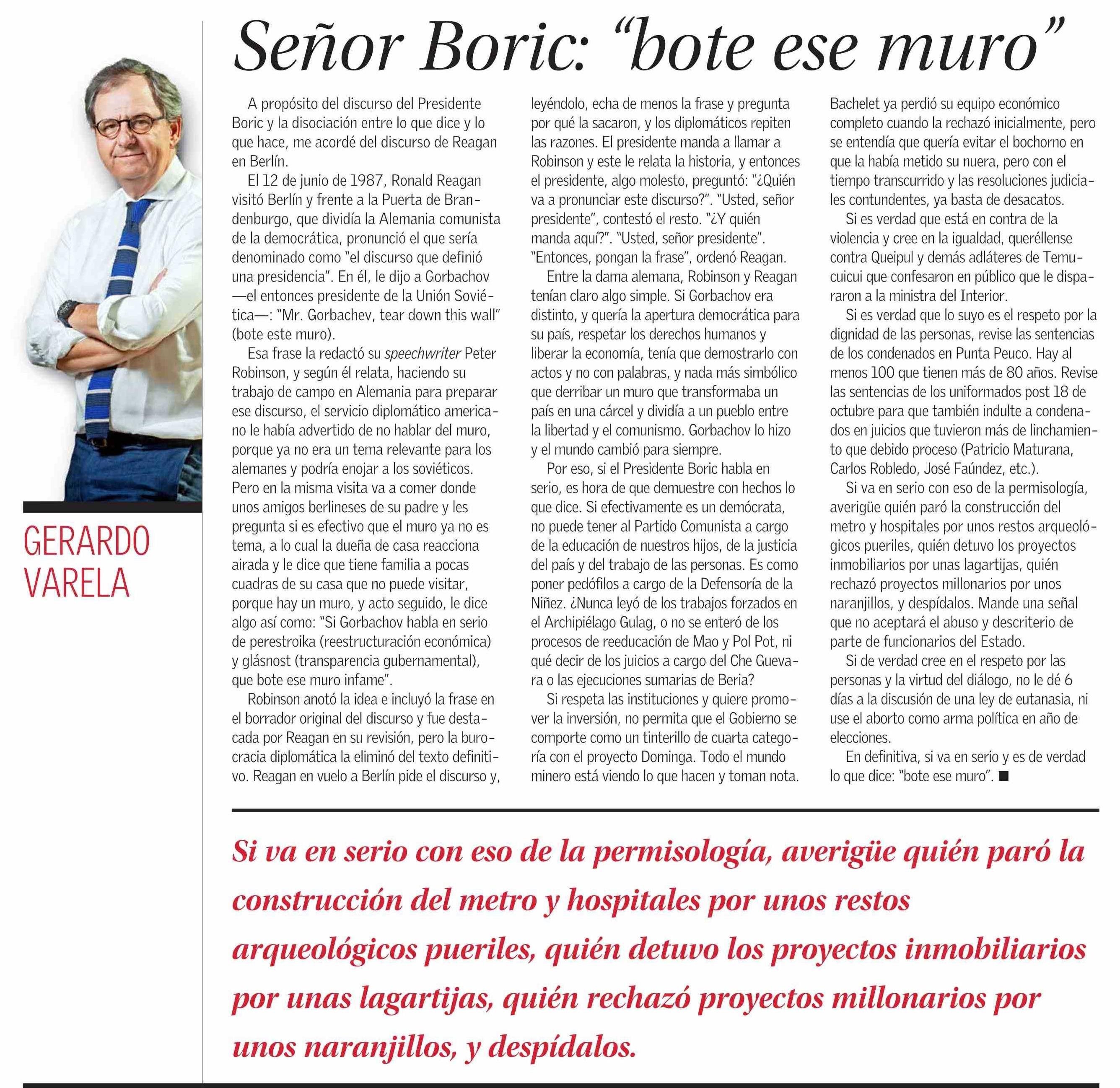 Columnas de Opinión: Señor Boric: “bote ese muro”