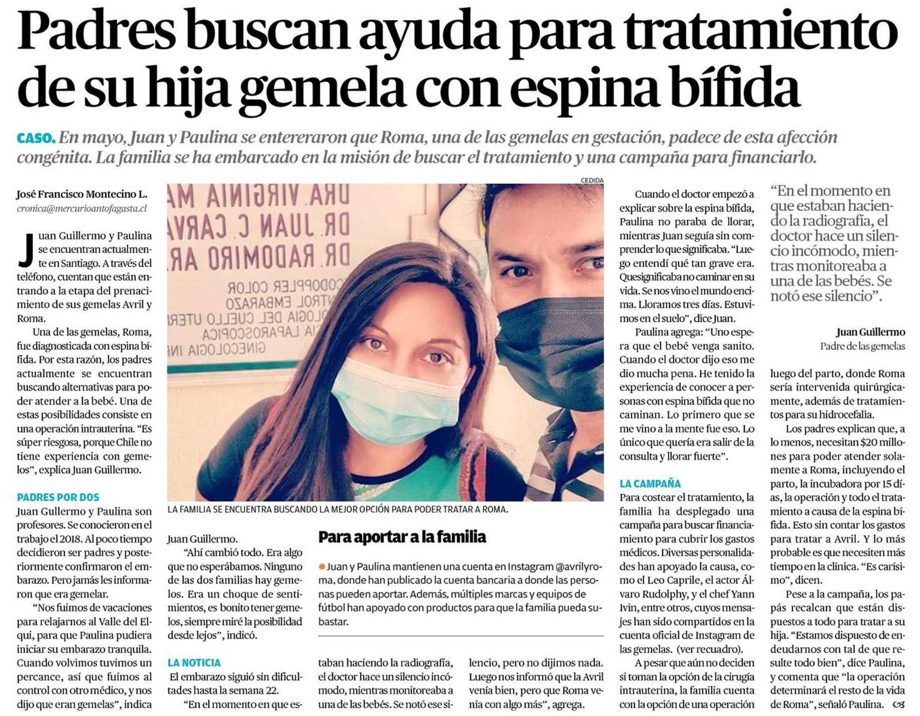 Padres buscan ayuda para tratamiento de su hija gemela con espina bífida