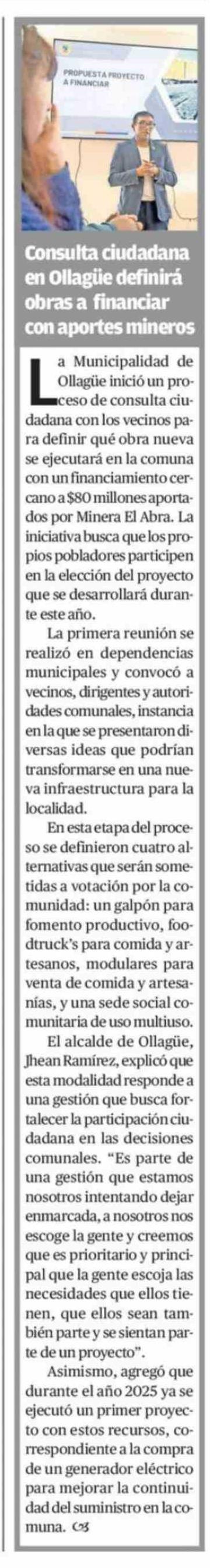 Consulta ciudadana en Ollagüe definirá obras a financiar con aportes mineros a Municipalidad de