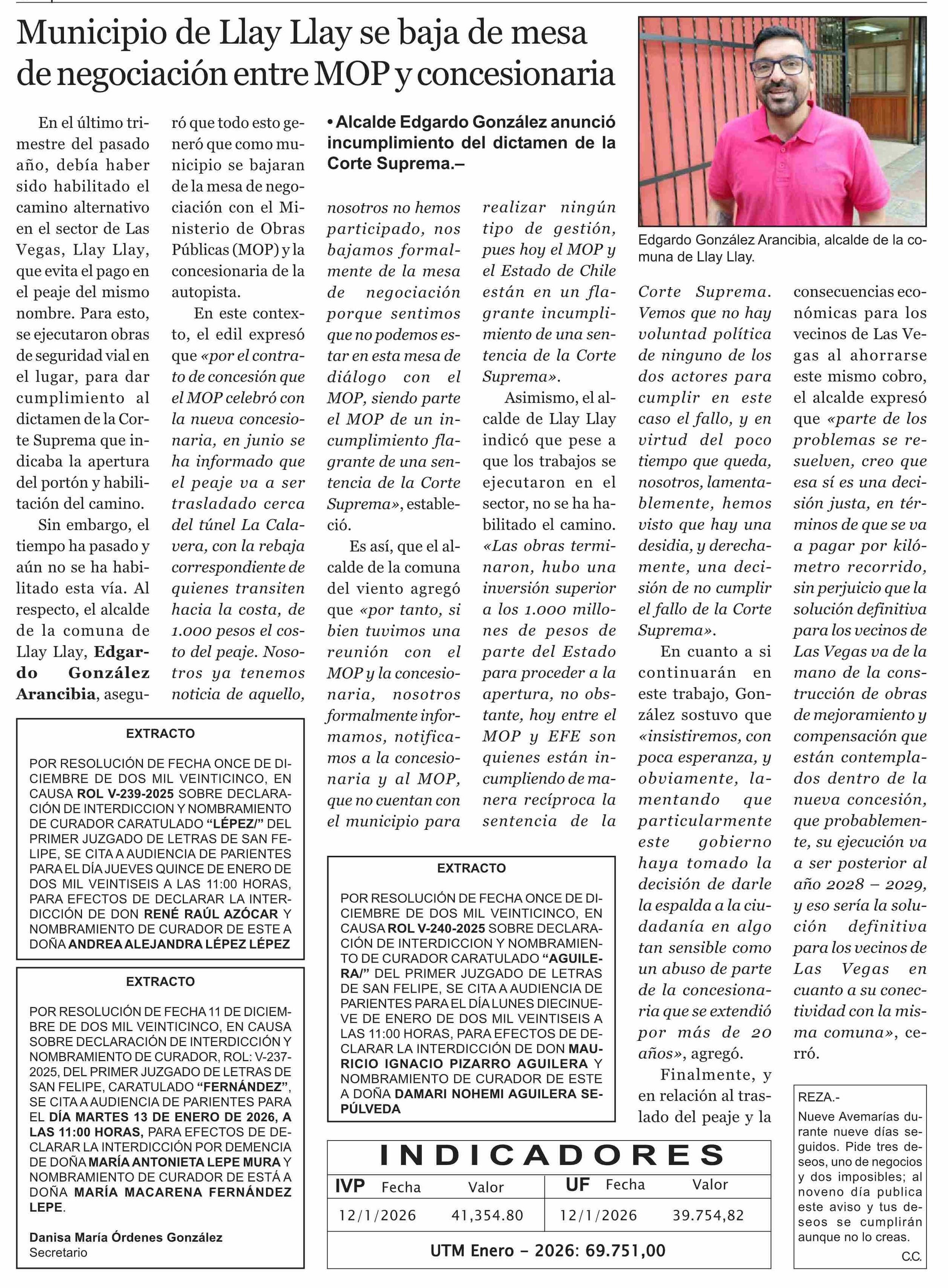 Municipio de Llay Llay se baja de mesa de negociación entre MOP y concesionaria