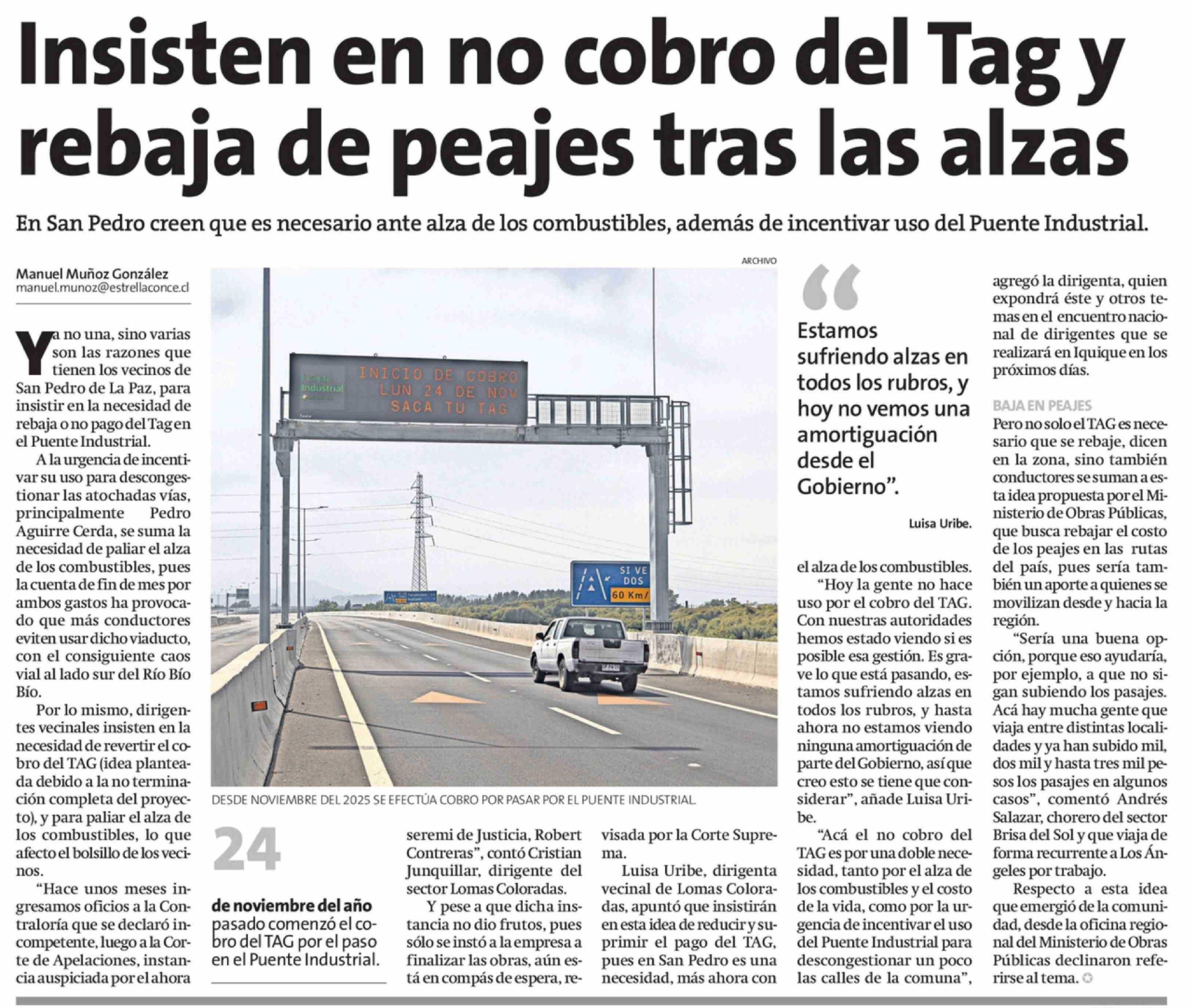 Insisten en no cobro del Tag y rebaja de peajes tras las alzas
