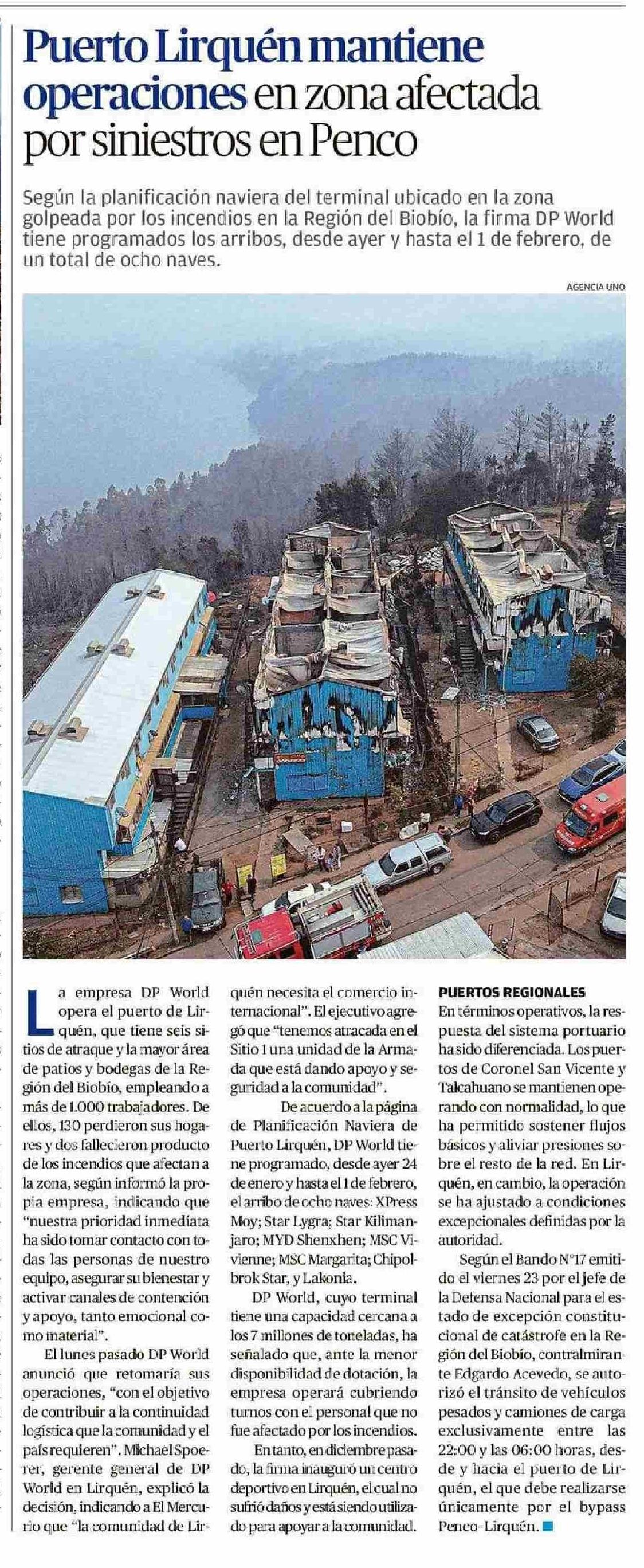 Puerto Lirquén mantiene operaciones en zona afectada por siniestros en Penco