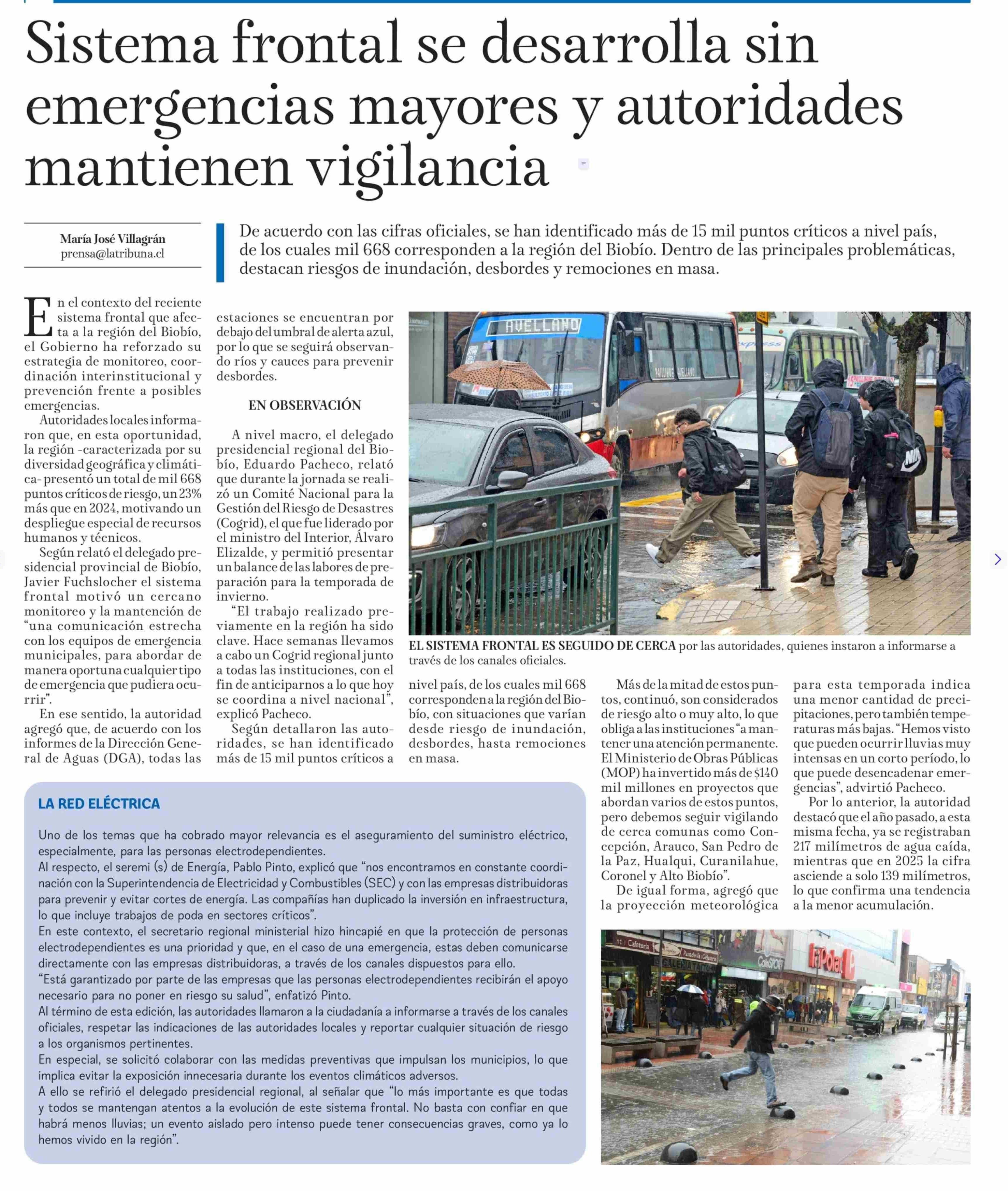 Sistema frontal se desarrolla sin emergencias mayores y autoridades mantienen vigilancia
