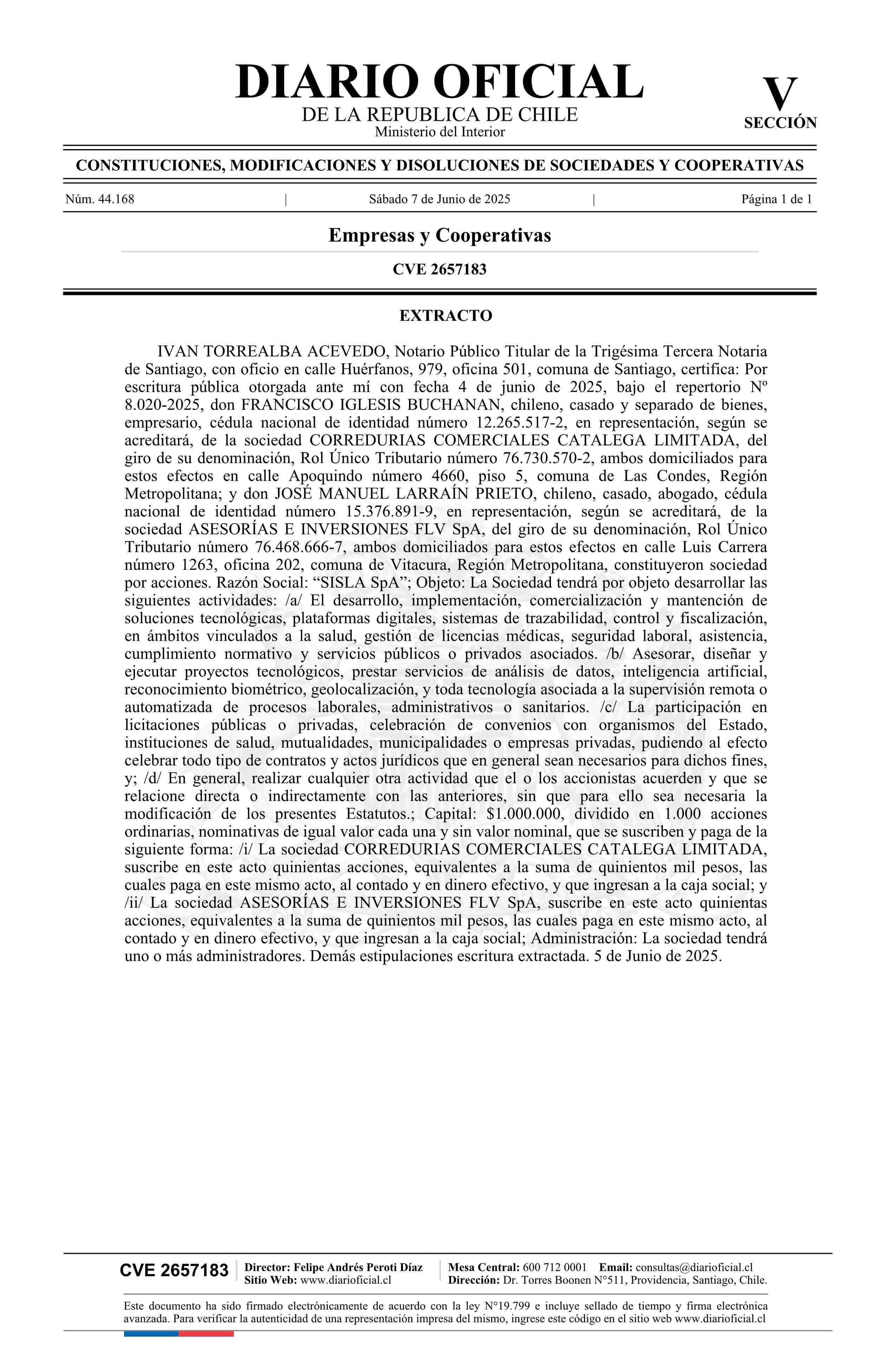 Diario Oficial Edición Electrónica (Diario Oficial de Chile - 5 Empresas Y Cooper)