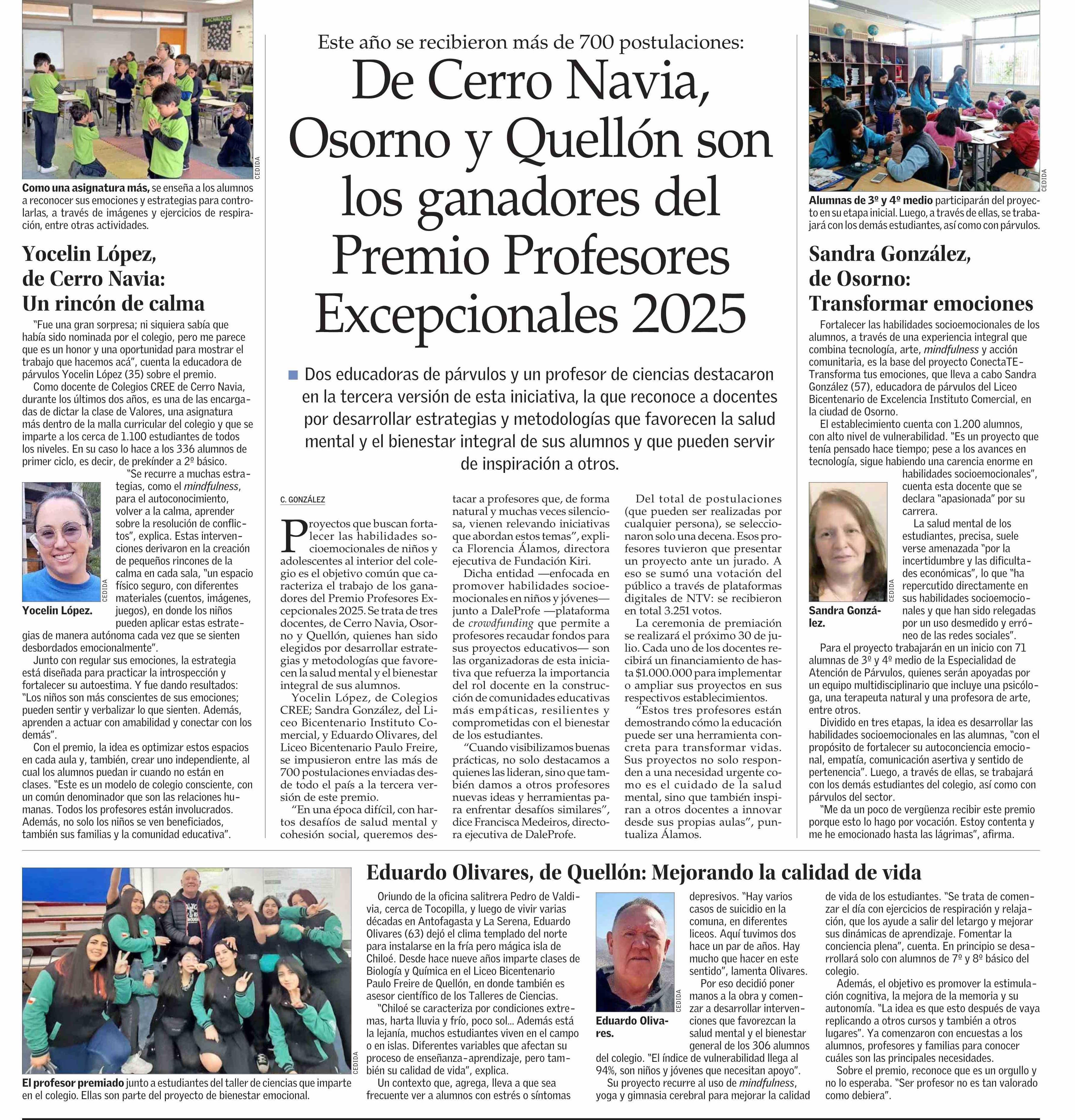 De Cerro Navia, Osorno y Quellón son los ganadores del Premio Profesores Excepcionales 2025