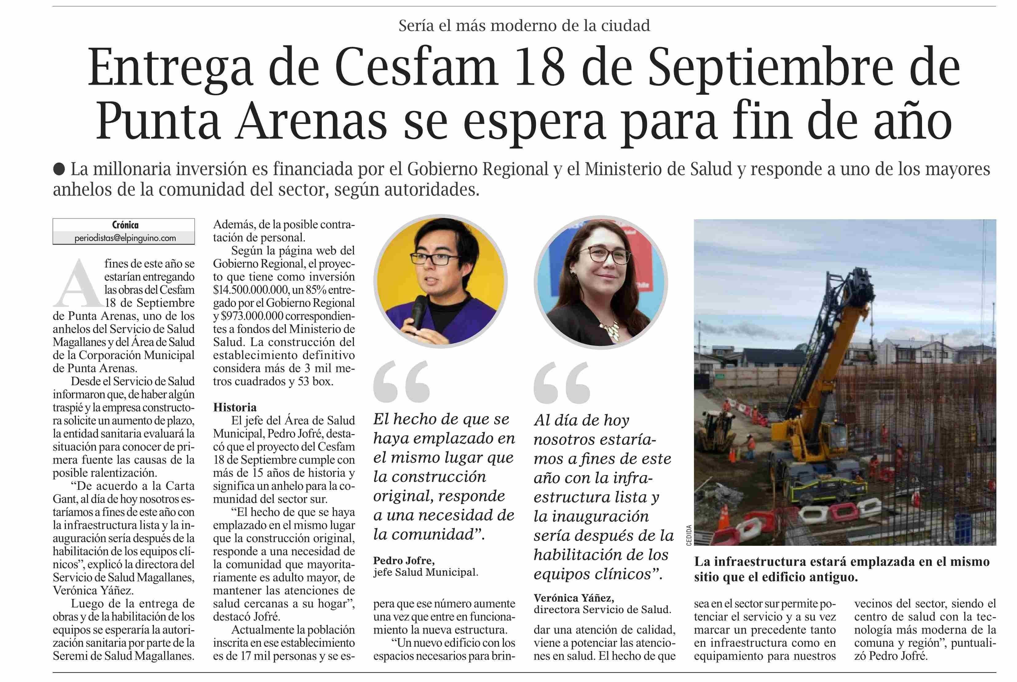 Entrega de Cesfam 18 de Septiembre de Punta Arenas se espera para fin de año