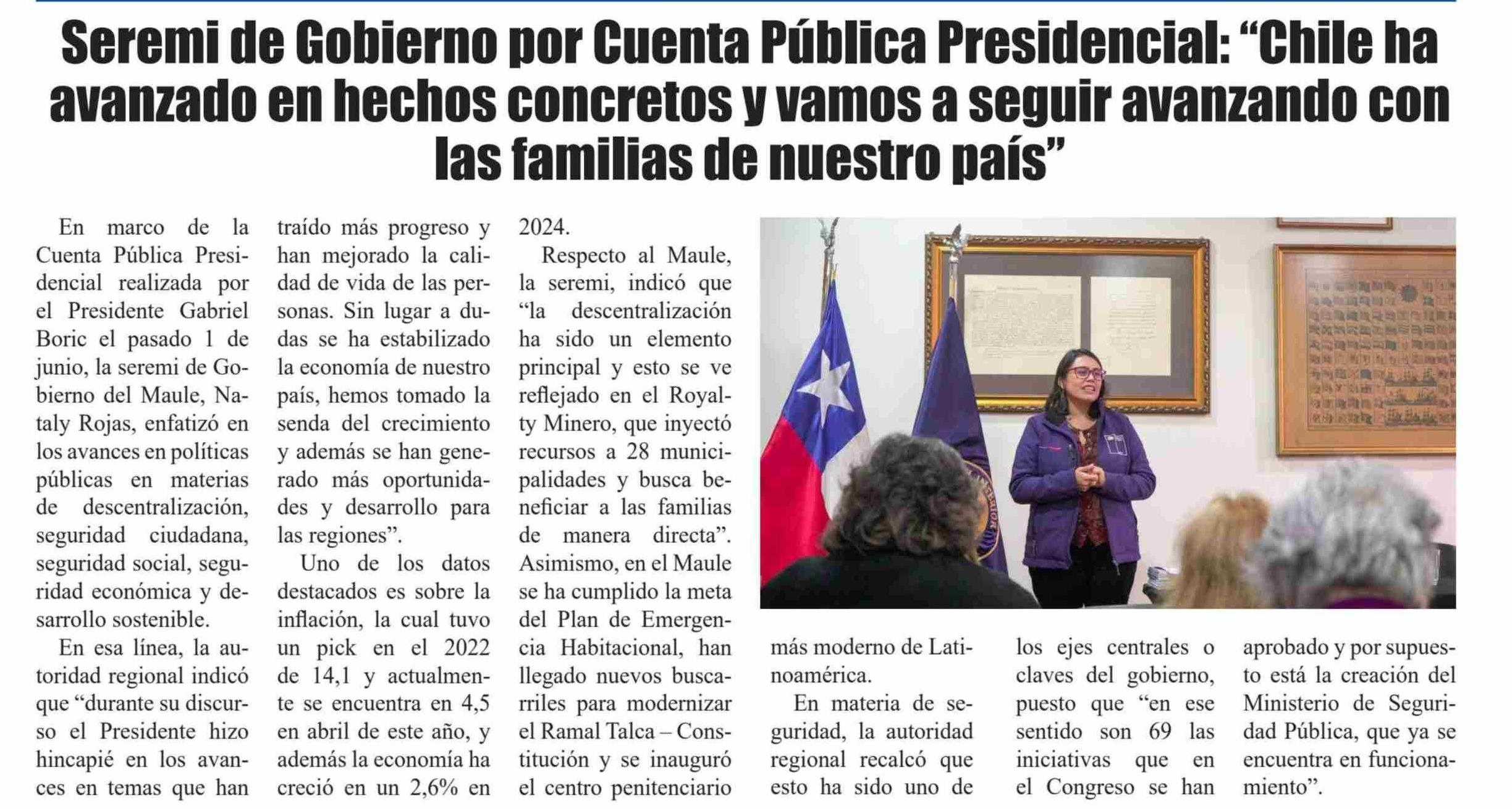 Seremi de Gobierno por Cuenta Pública Presidencial: “Chile ha avanzado en hechos concretos y vamos a seguir avanzando con las familias de nuestro país”