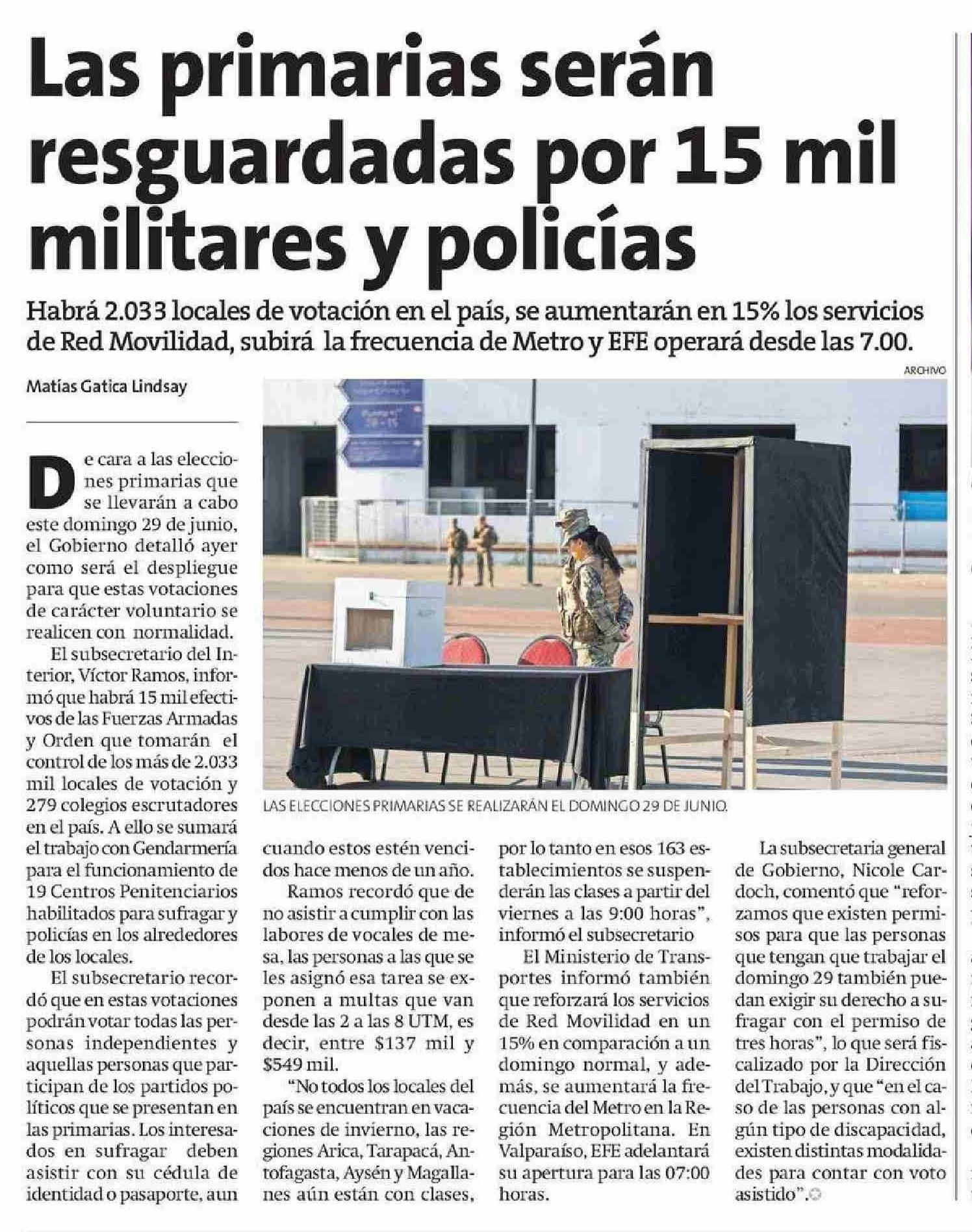 Las primarias serán resguardadas por 15 mil militares y policías