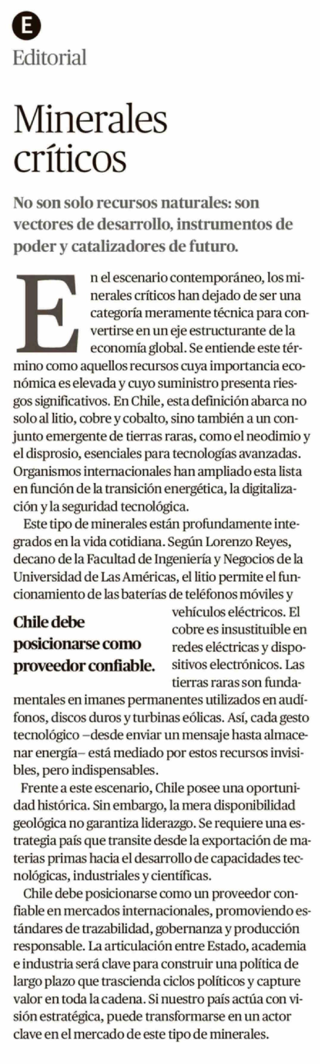 Título: Editorial: Minerales críticos