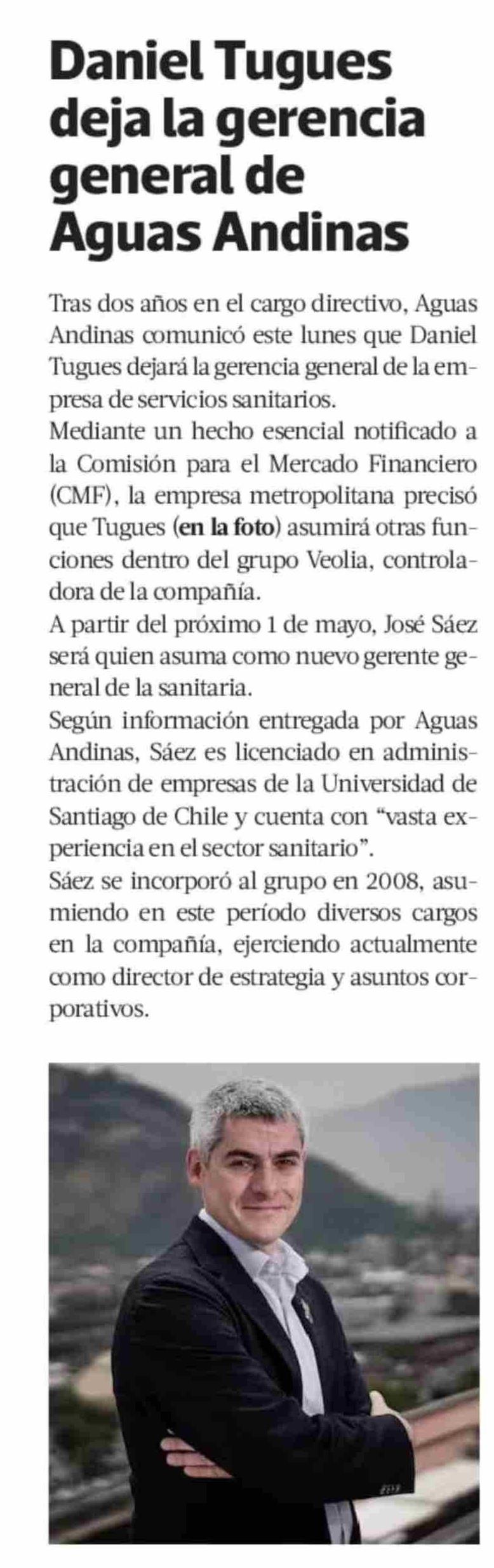 Daniel Tugues deja la gerencia general de Aguas Andinas