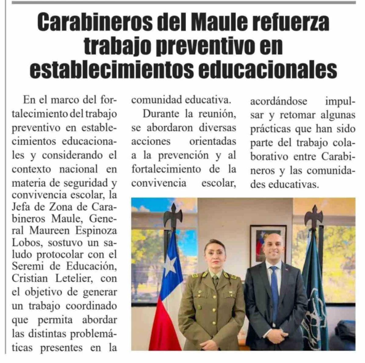 Carabineros del Maule refuerza trabajo preventivo en establecimientos educacionales