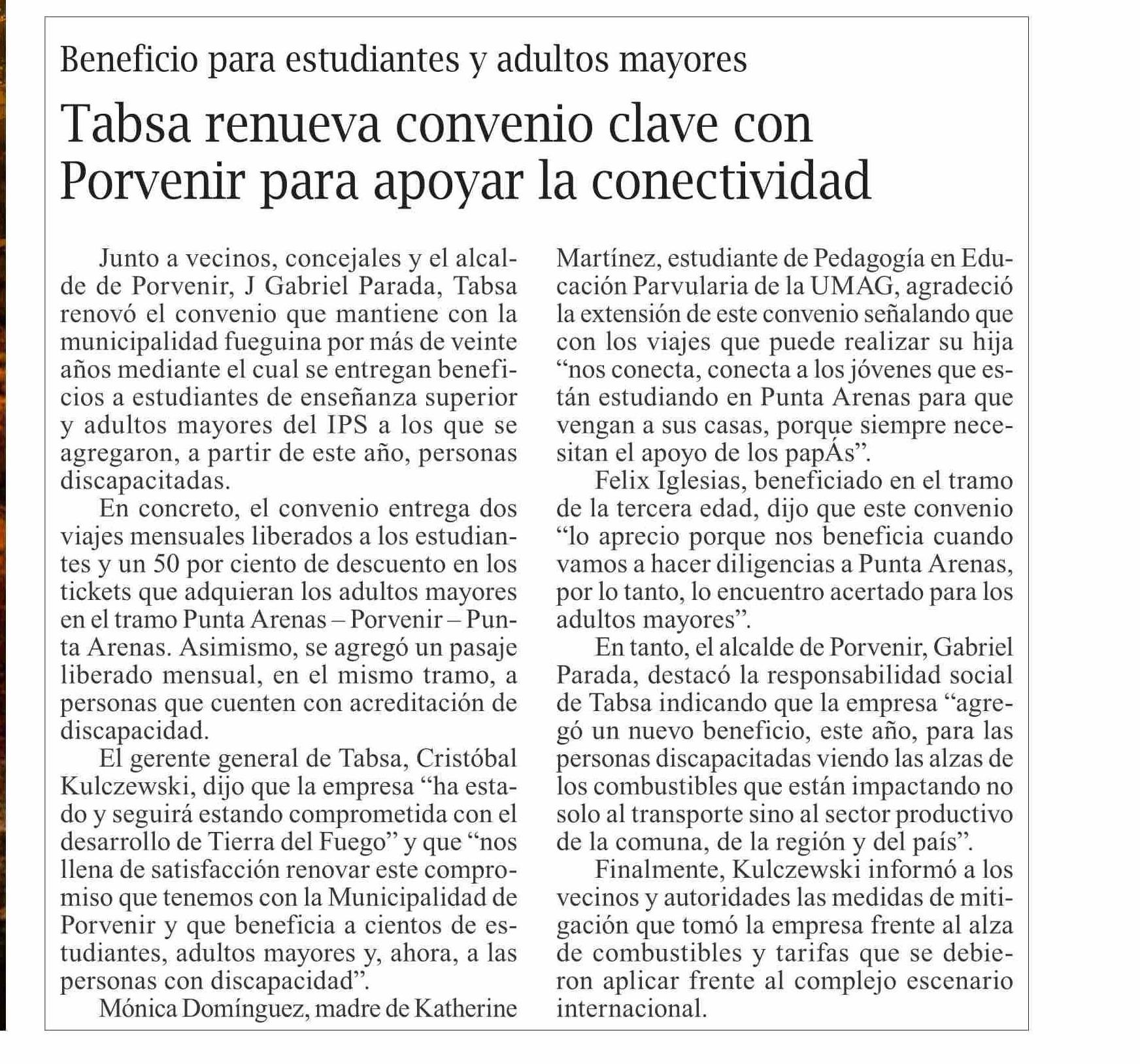 Título: Tabsa renueva convenio clave con Porvenir para apoyar la conectividad