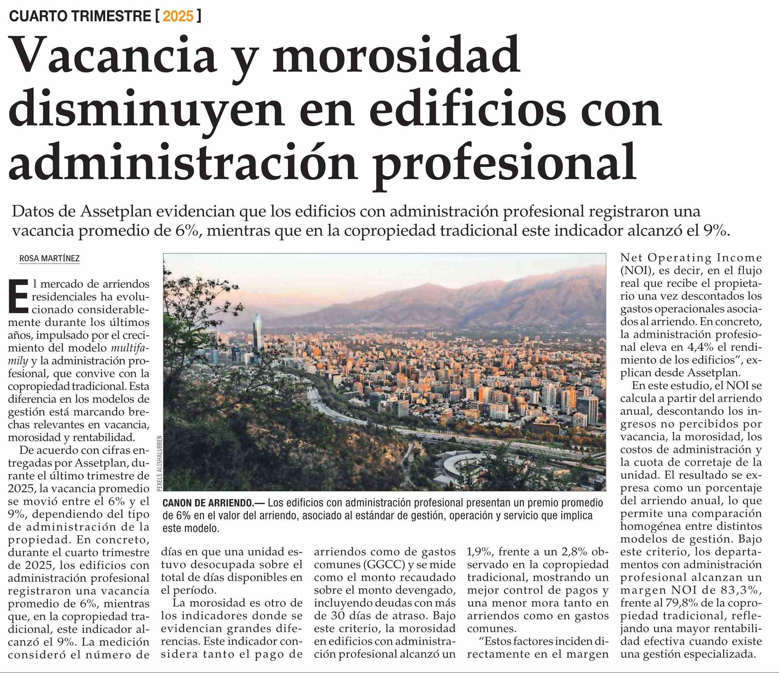 Vacancia y morosidad disminuyen en edificios con administración profesional