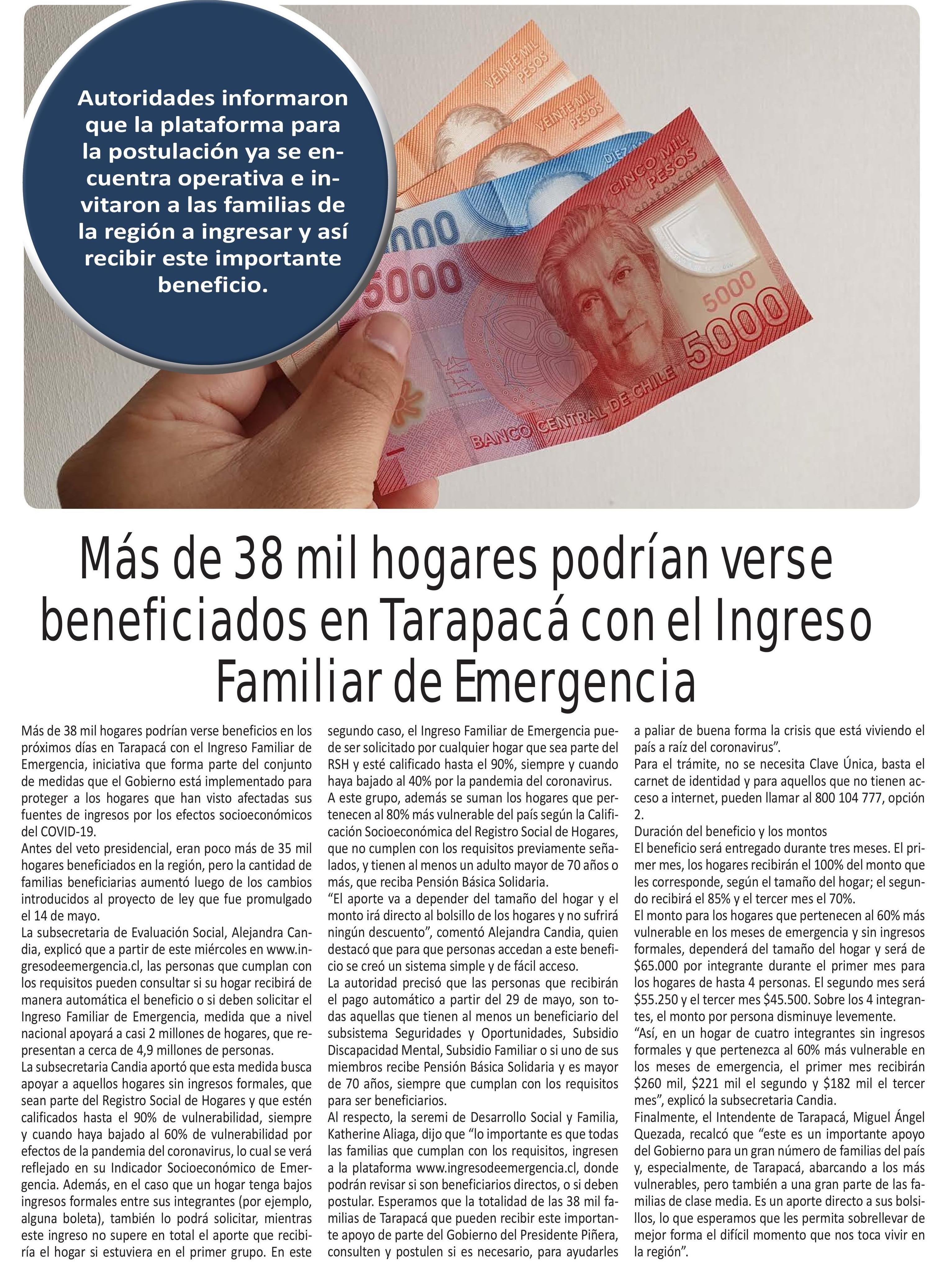 Más de 38 mil hogares podrían verse beneficiados en Tarapacá con el Ingreso de