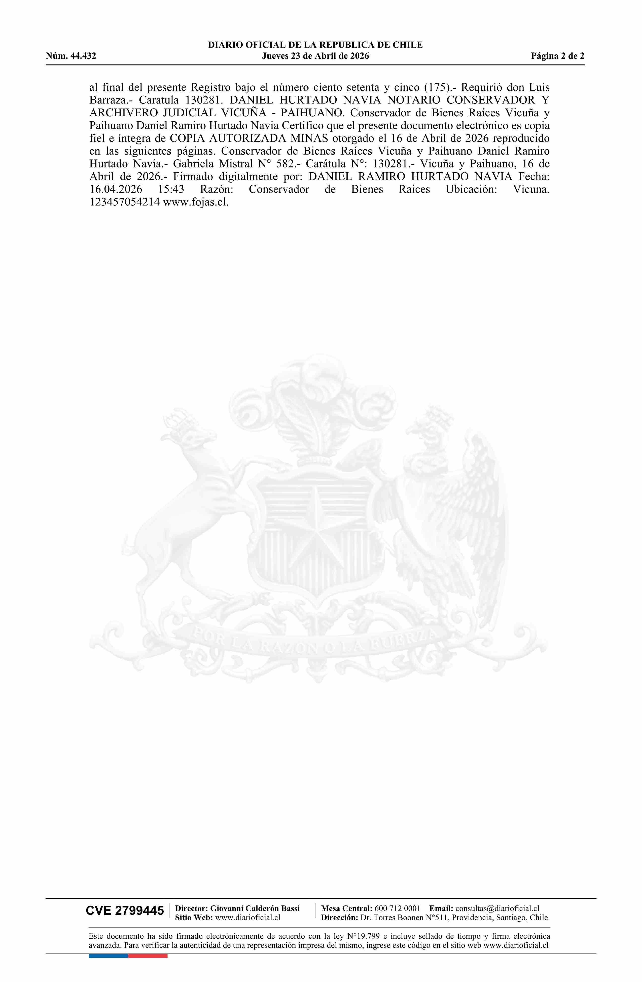 DIARIO OFICIAL CHILE - BOLETÍN OFICIAL DE MINERÍA (DIARIO OFICIAL CHILE – BOM – PEDIMENTOS MINEROS)