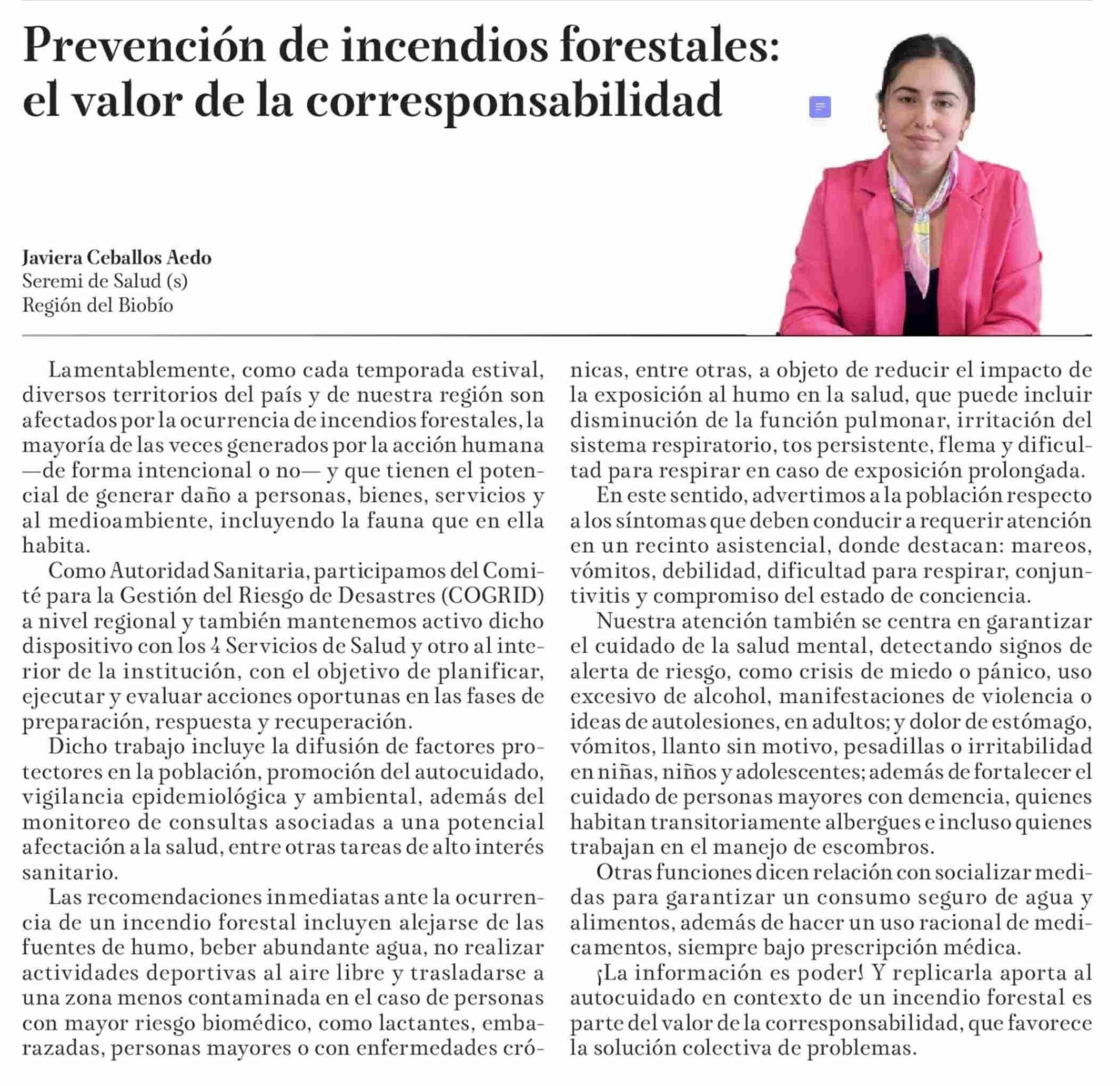 Columnas de Opinión: Prevención de incendios forestales: el valor de la corresponsabilidad