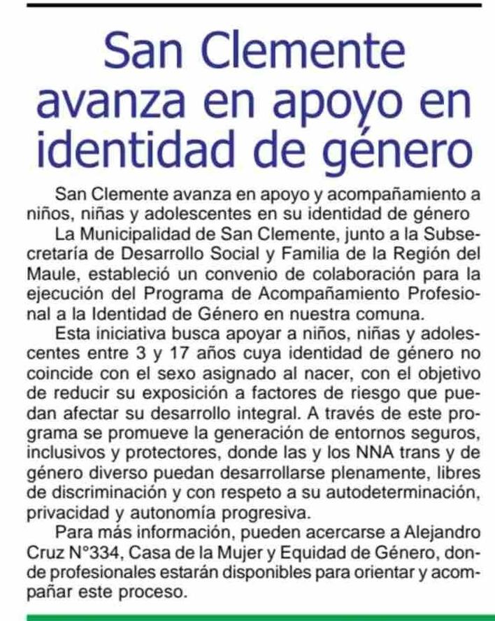 San Clemente avanza en apoyo en identidad de género