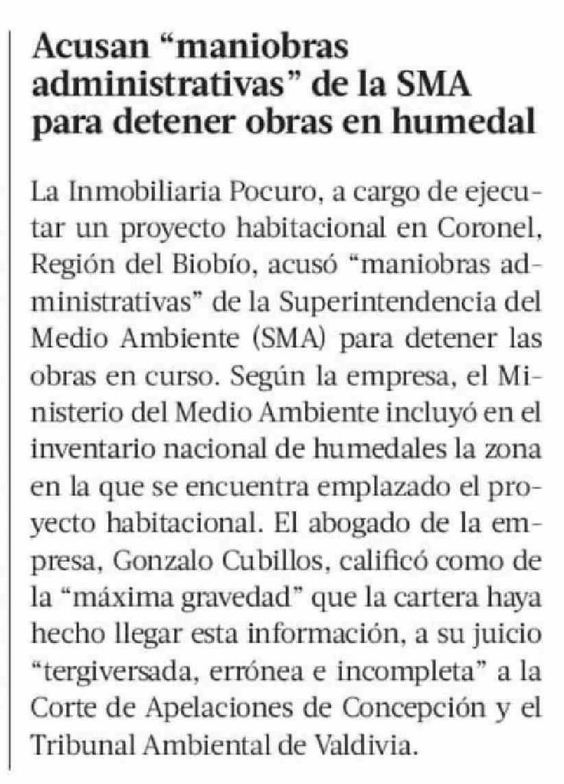 Acusan "maniobras administrativas" de la SMA para detener obras en humedal