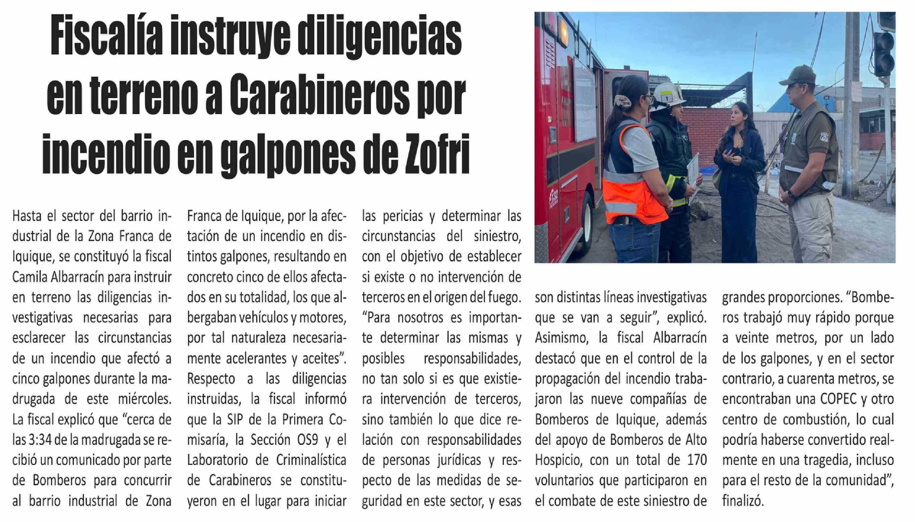 Fiscalía instruye diligencias en terreno a Carabineros por incendio en galpones de Zofri