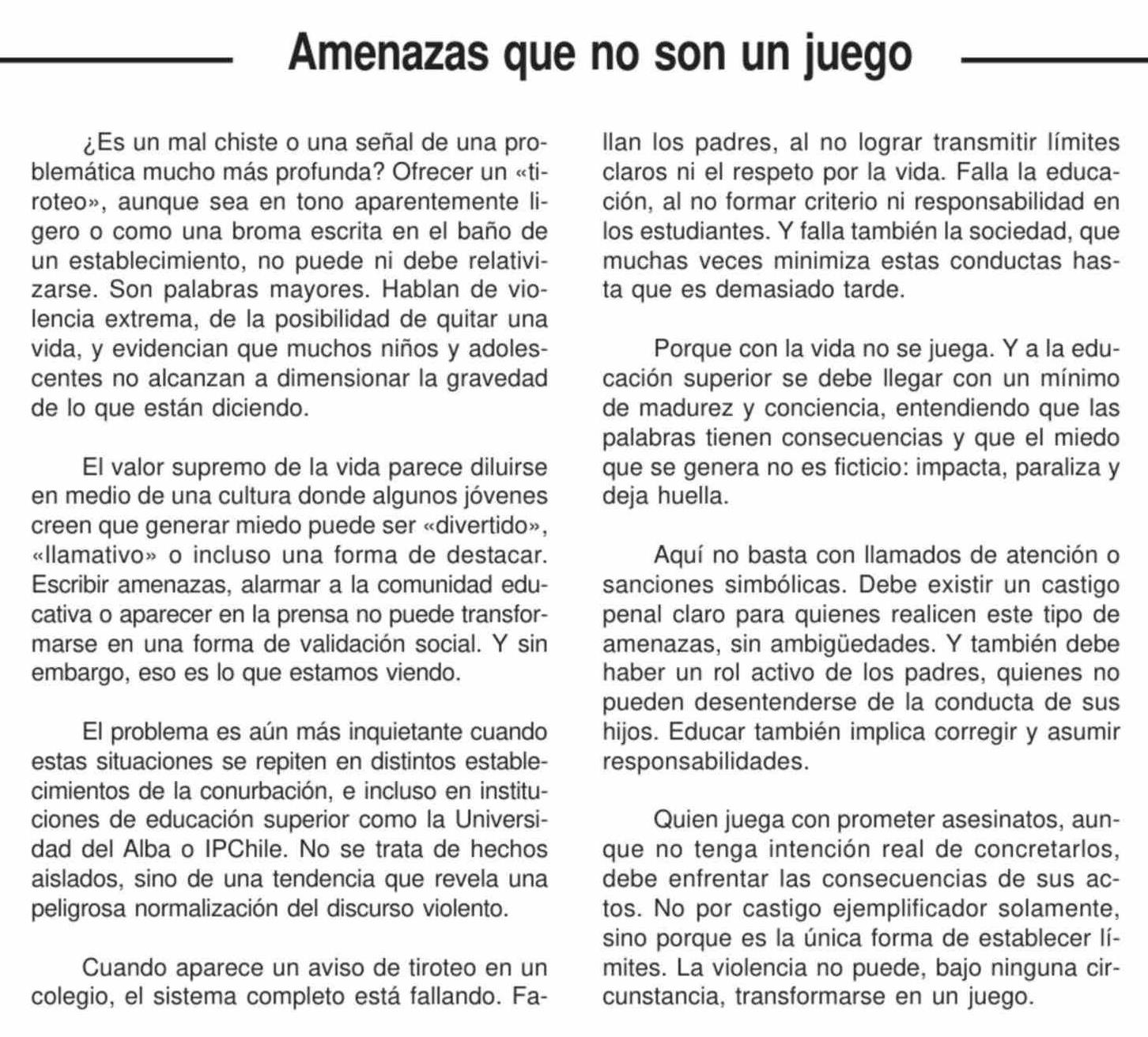 Editorial: Amenazas que no son un juego