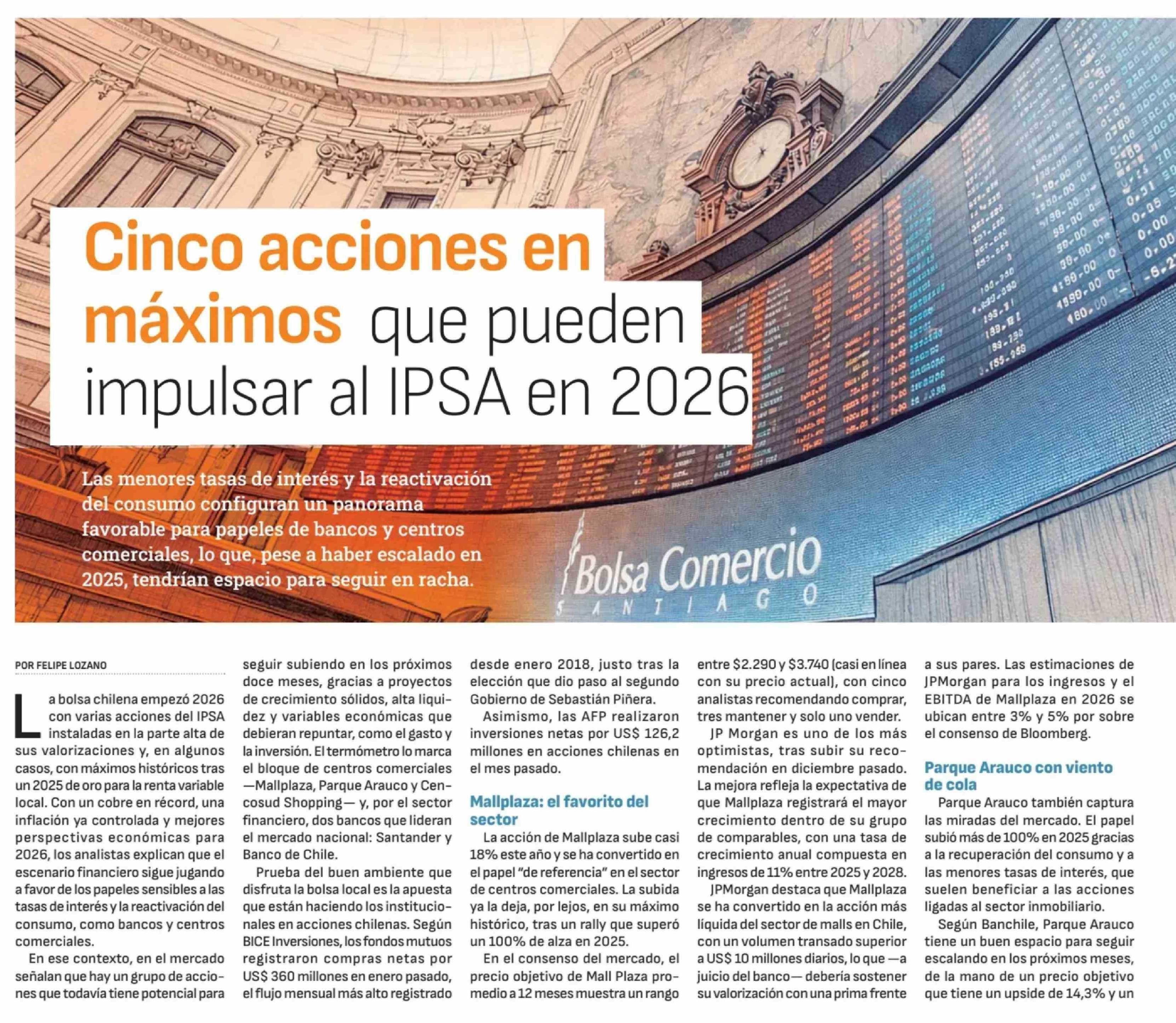 Cinco acciones en máximos que pueden impulsar al IPSA en 2026