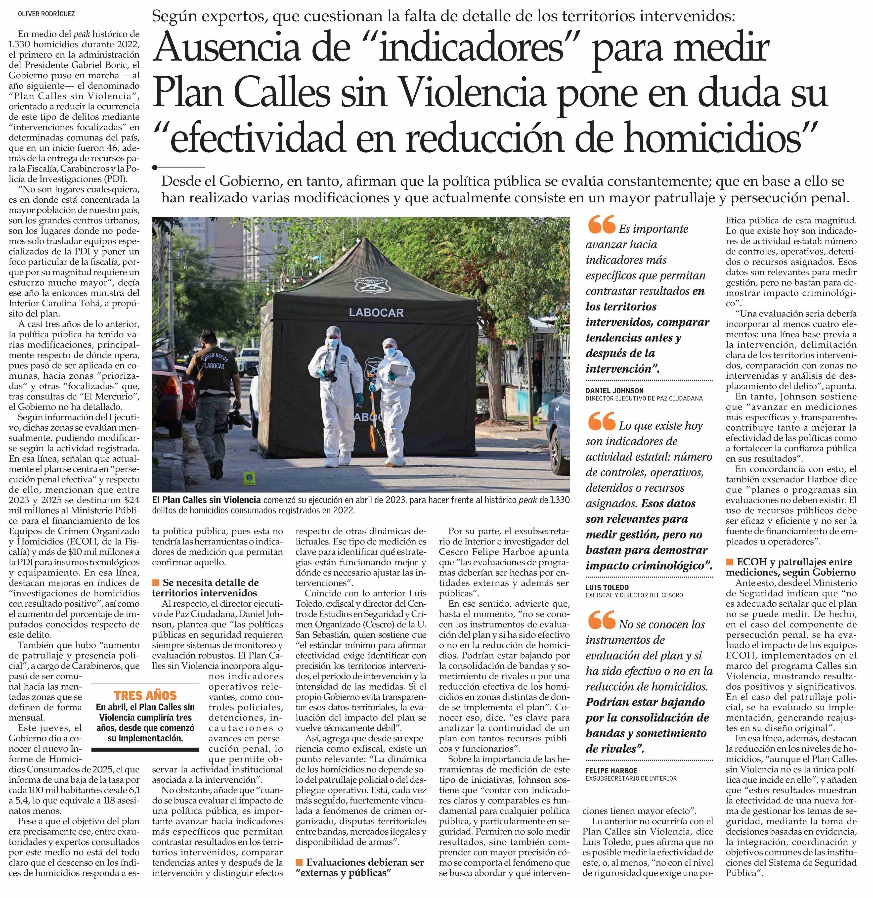 Ausencia de “indicadores” para medir Plan Calles sin Violencia pone en duda su “efectividad en reducción de homicidios”