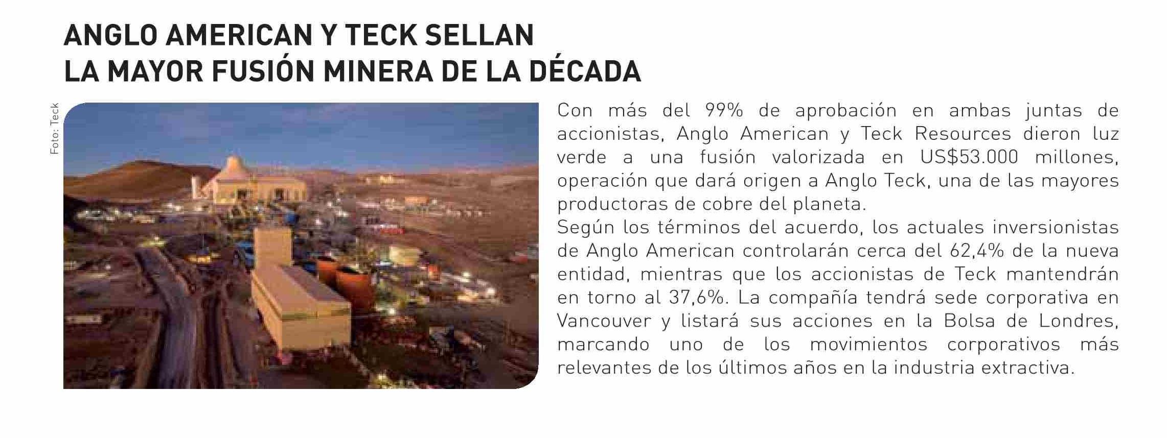 ANGLO AMERICAN Y TECK SELLAN LA MAYOR FUSIÓN MINERA DE LA DÉCADA
