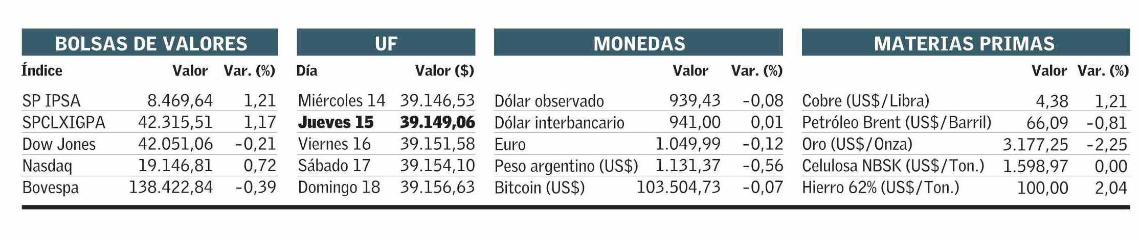 INDICADORES ECONÓMICOS: BOLSAS DE VALORES UF MONEDAS . MATERIAS PRIMAS