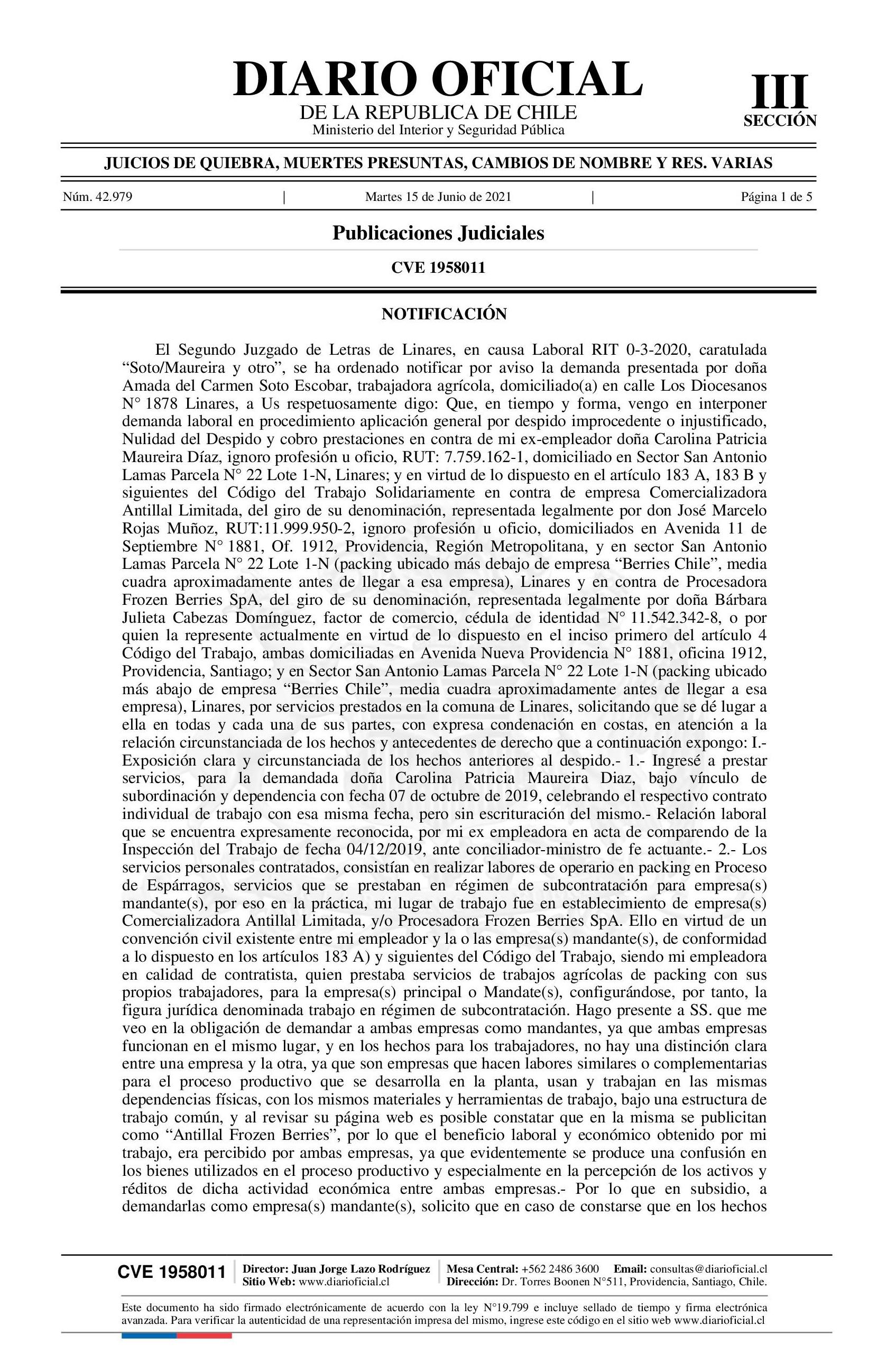 Diario Oficial Edición Electrónica (Diario Oficial de Chile - 3 Public. Judiciales)