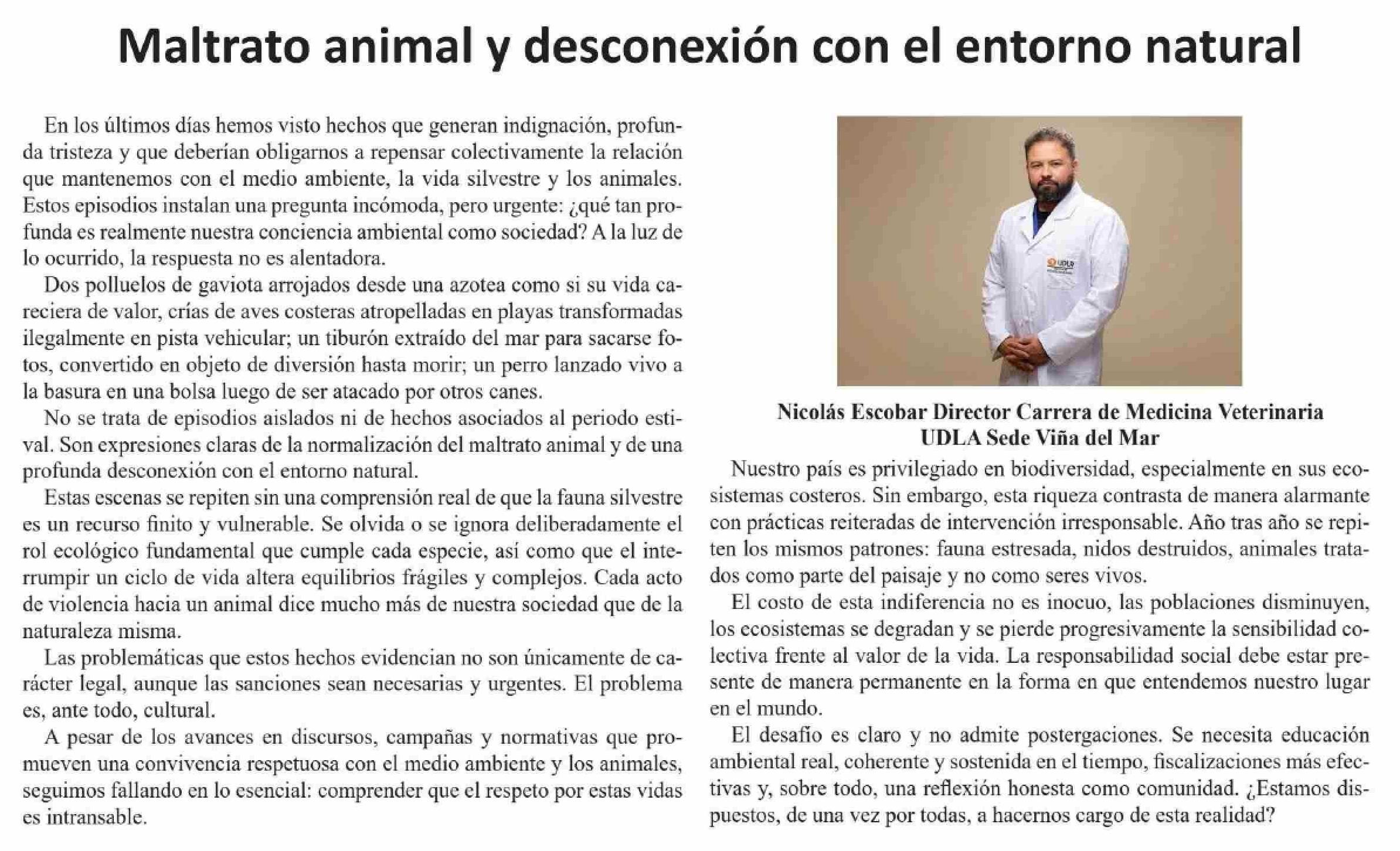 Columnas de Opinión: Maltrato animal y desconexión con el entorno natural