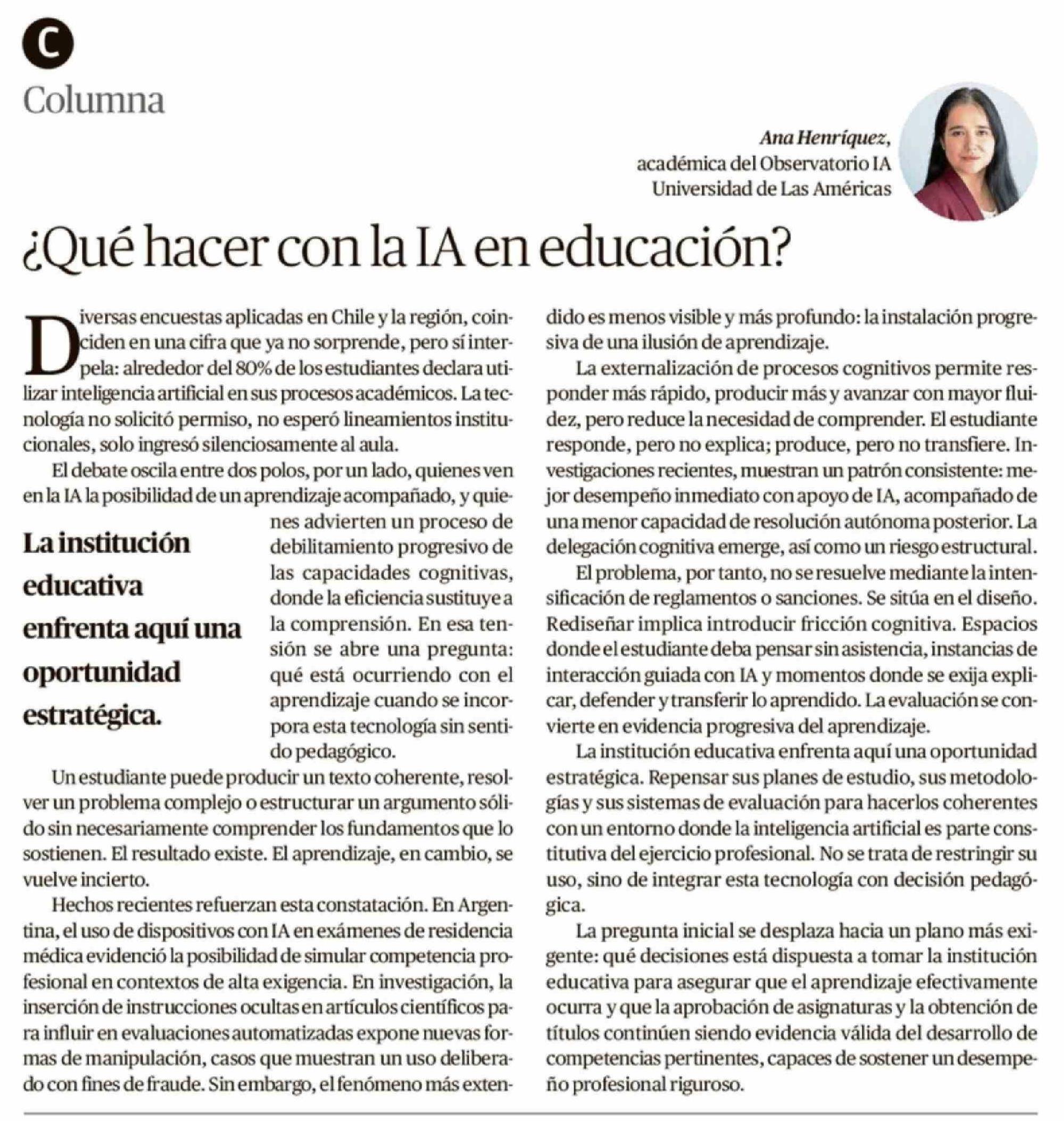Columnas de Opinión: ¿Qué hacer con la IA en educación?