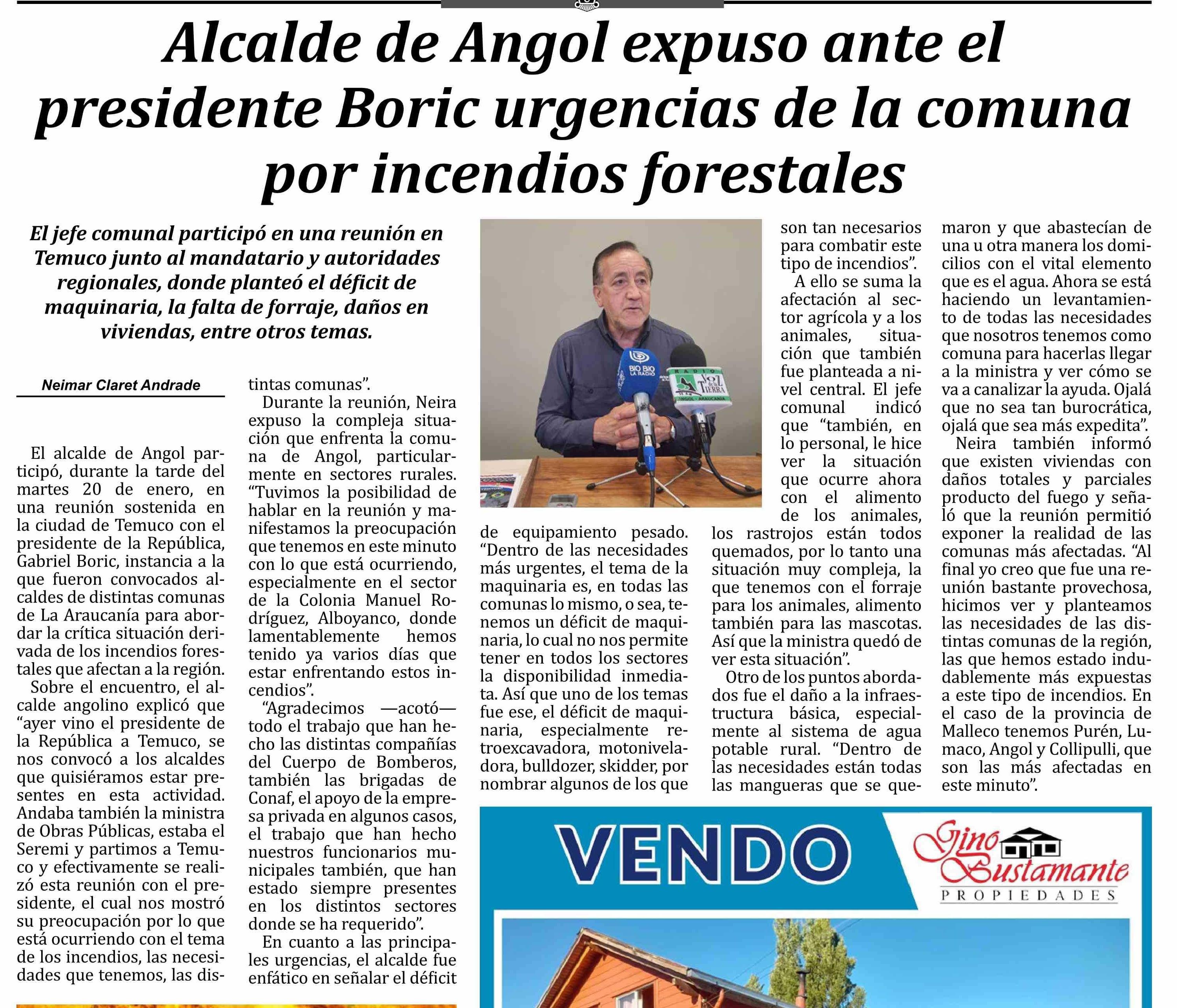 Alcalde de Angol expuso ante el presidente Boric urgencias de la comuna por incendios forestales