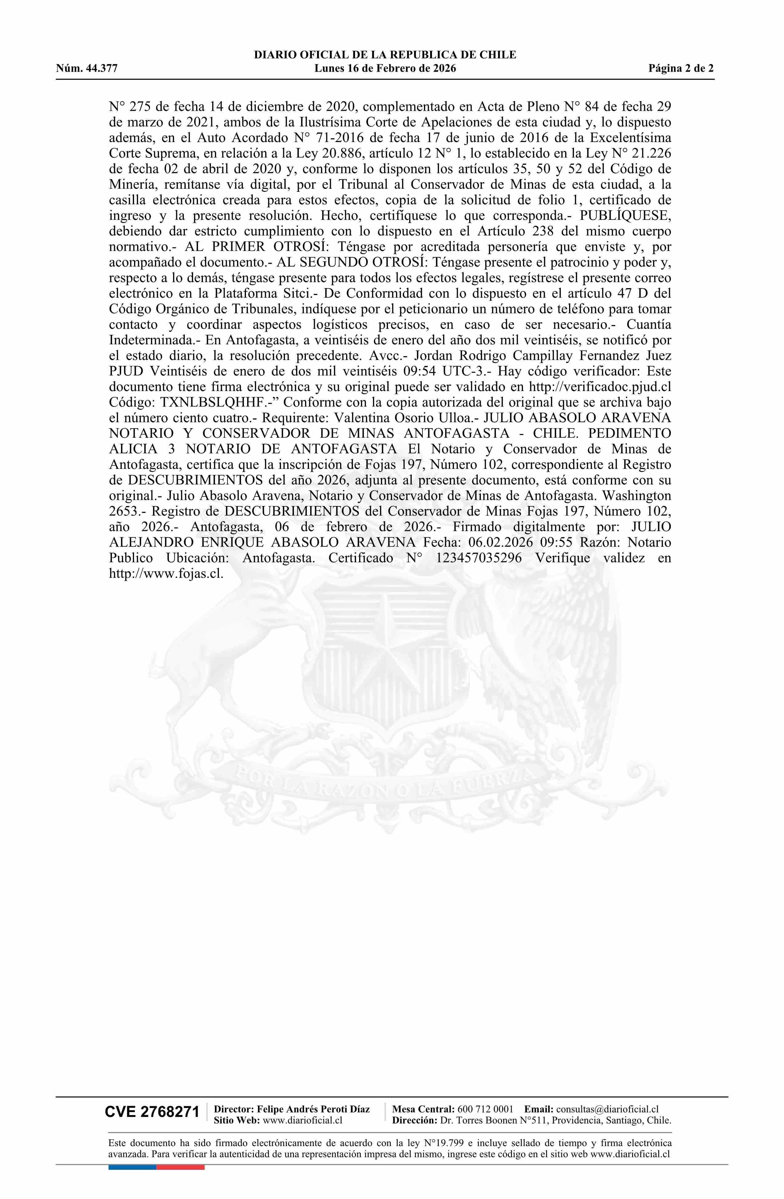 DIARIO OFICIAL CHILE - BOLETÍN OFICIAL DE MINERÍA (DIARIO OFICIAL CHILE – BOM – PEDIMENTOS MINEROS)