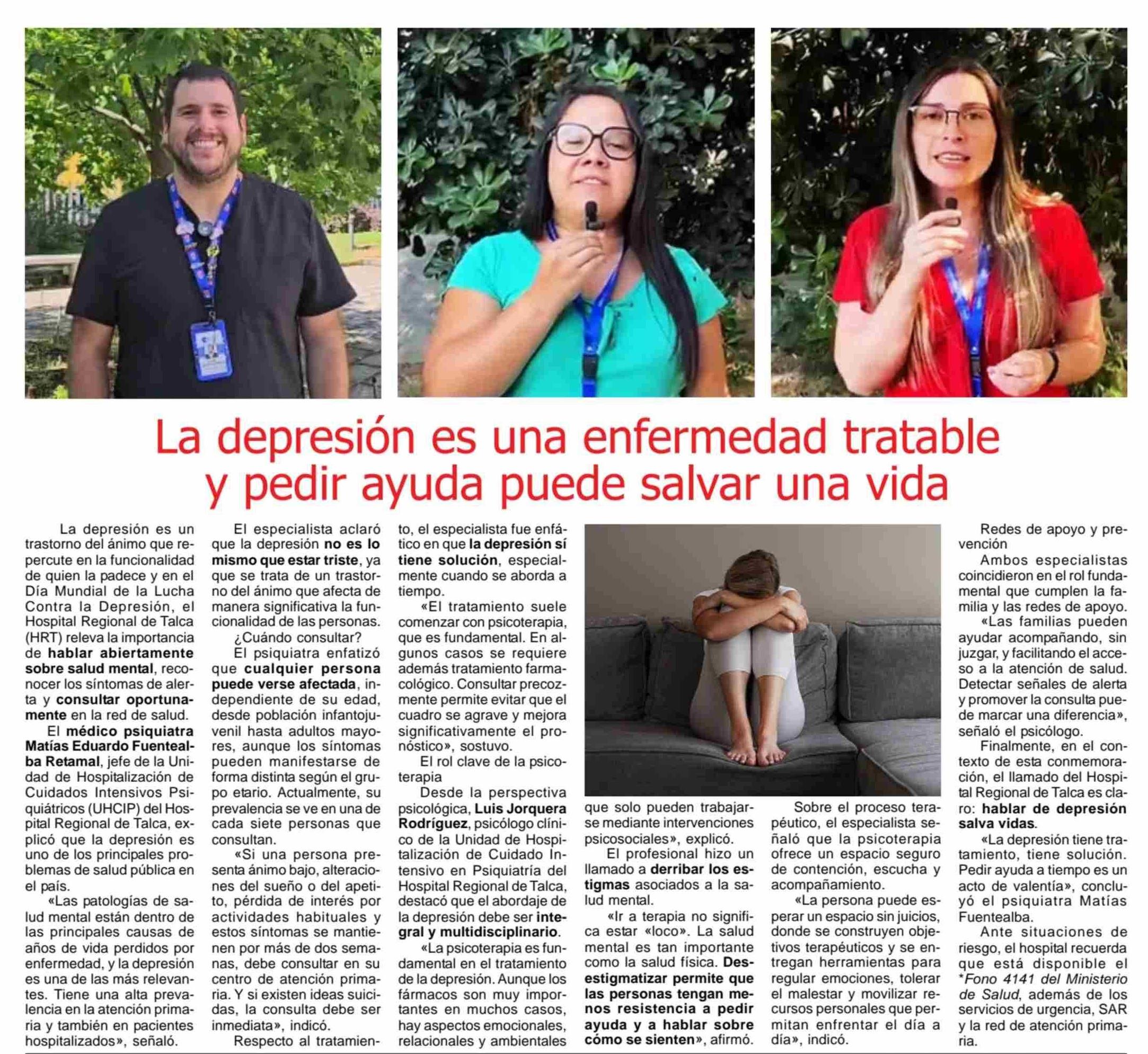 La depresión es una enfermedad tratable y pedir ayuda puede salvar una vida