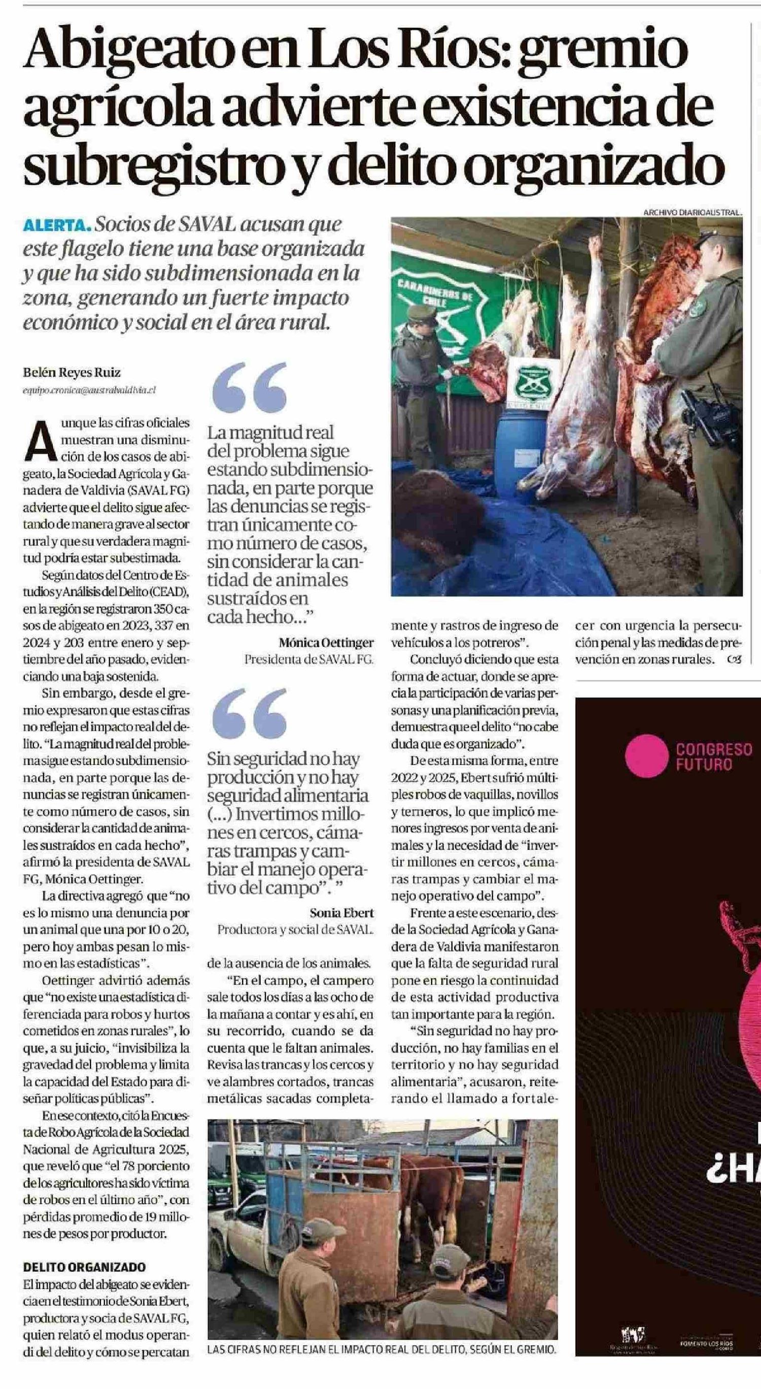 Abigeato en Los Ríos: gremio agrícola advierte existencia de subregistro y delito organizado
