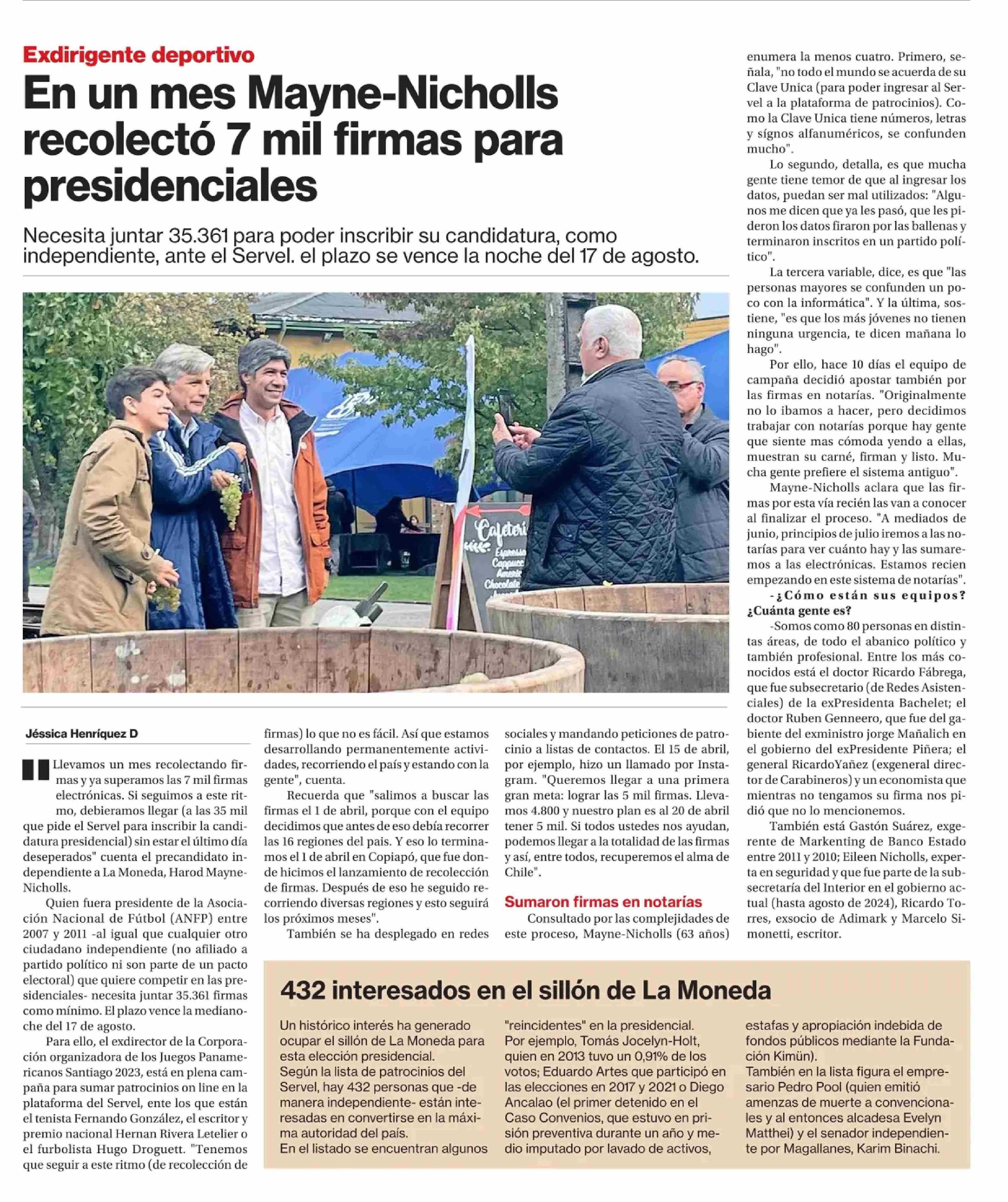 En un mes Mayne-Nicholls recolectó 7 mil firmas para presidenciales