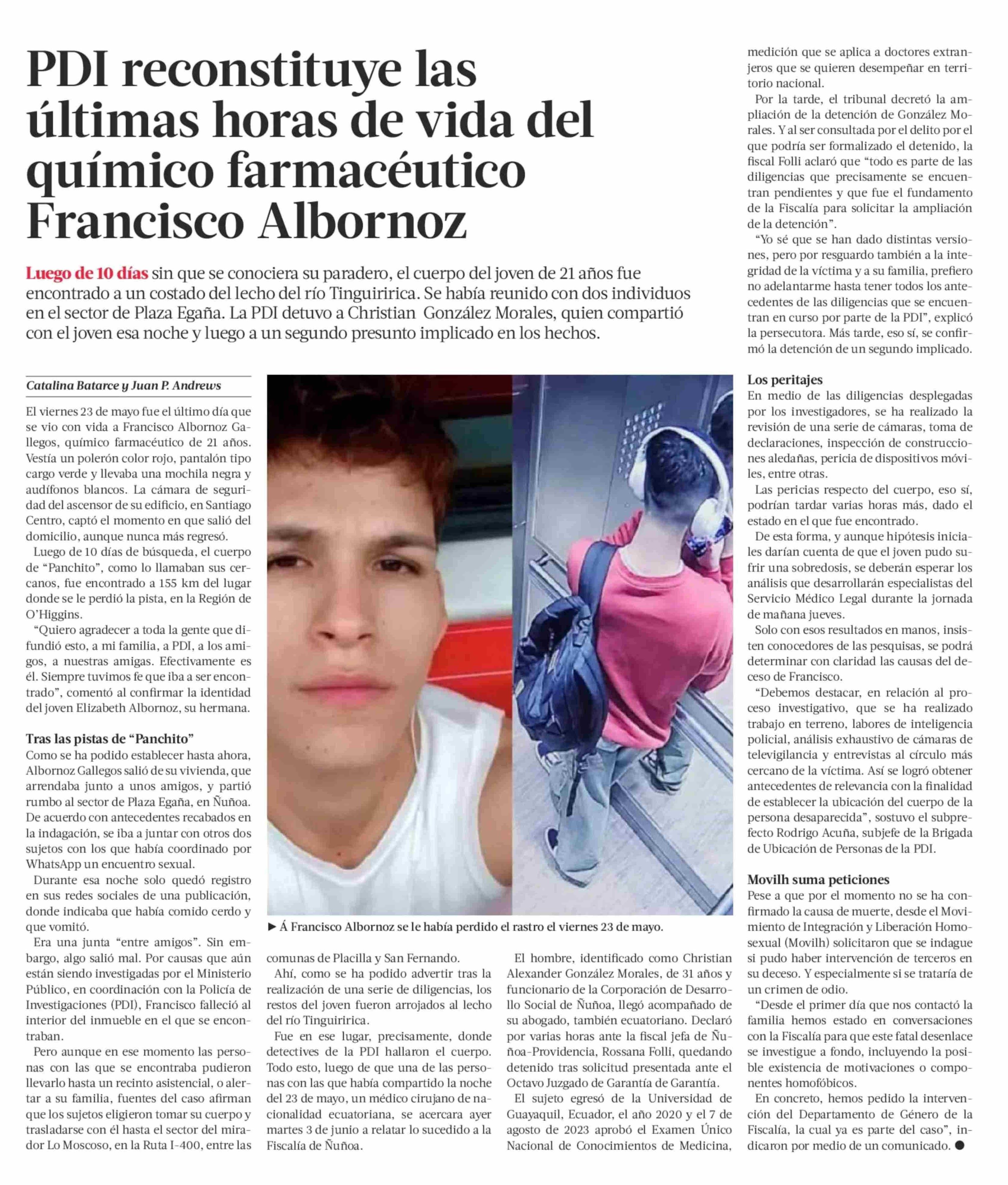 PDI reconstituye las últimas horas de vida del químico farmacéutico Francisco Albornoz