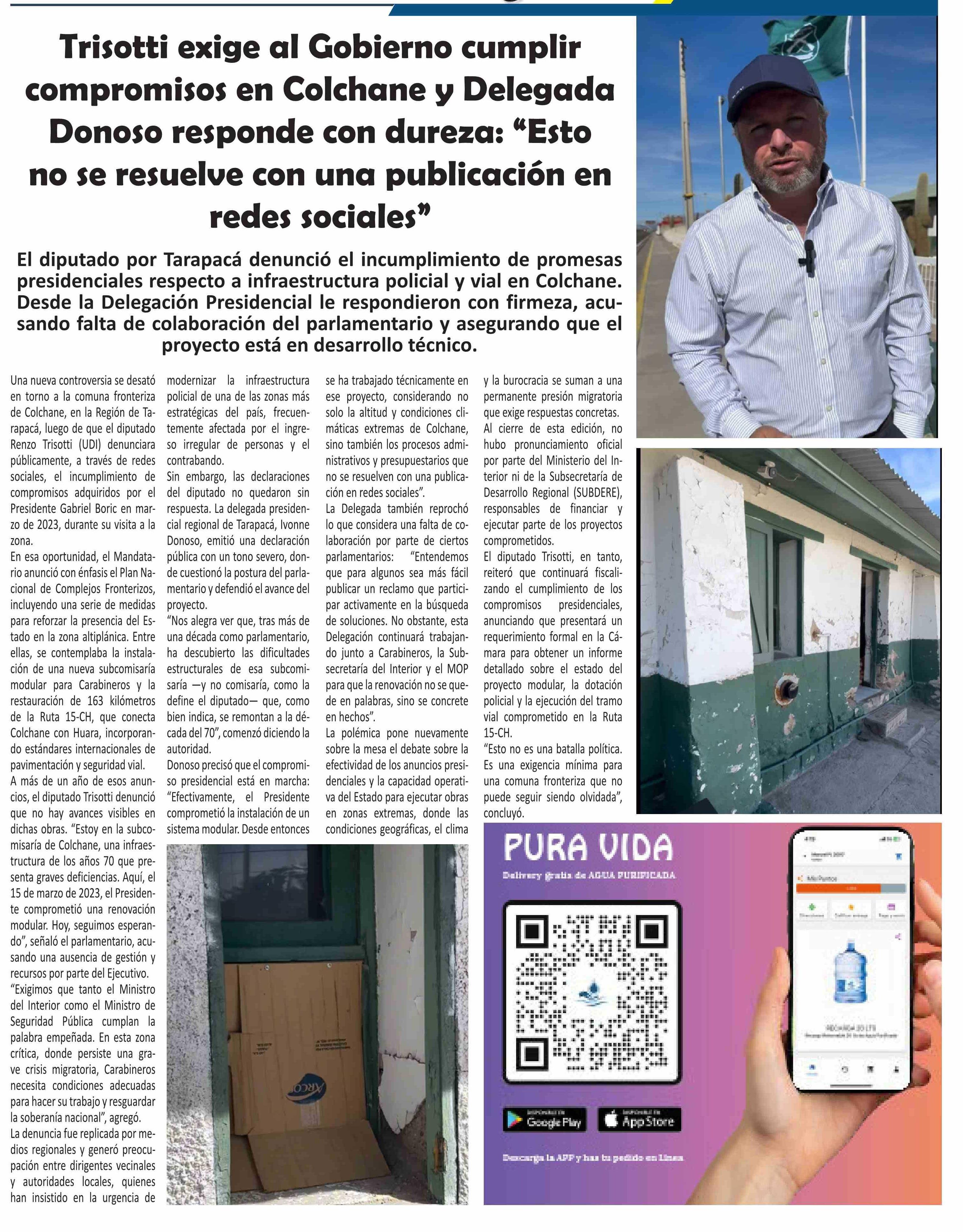 | Título: | Una nueva controversia se desató en torno a la comuna fronteriza de Colchane, en la Región de Tarapacá, luego de que el diputado Renzo Trisotti (UDI) denunciara públicamente, a través de redes sociales, el incumplimiento de compromisos adquiridos por el Presidente Gabriel Boric en marzo de 2023, dur |
