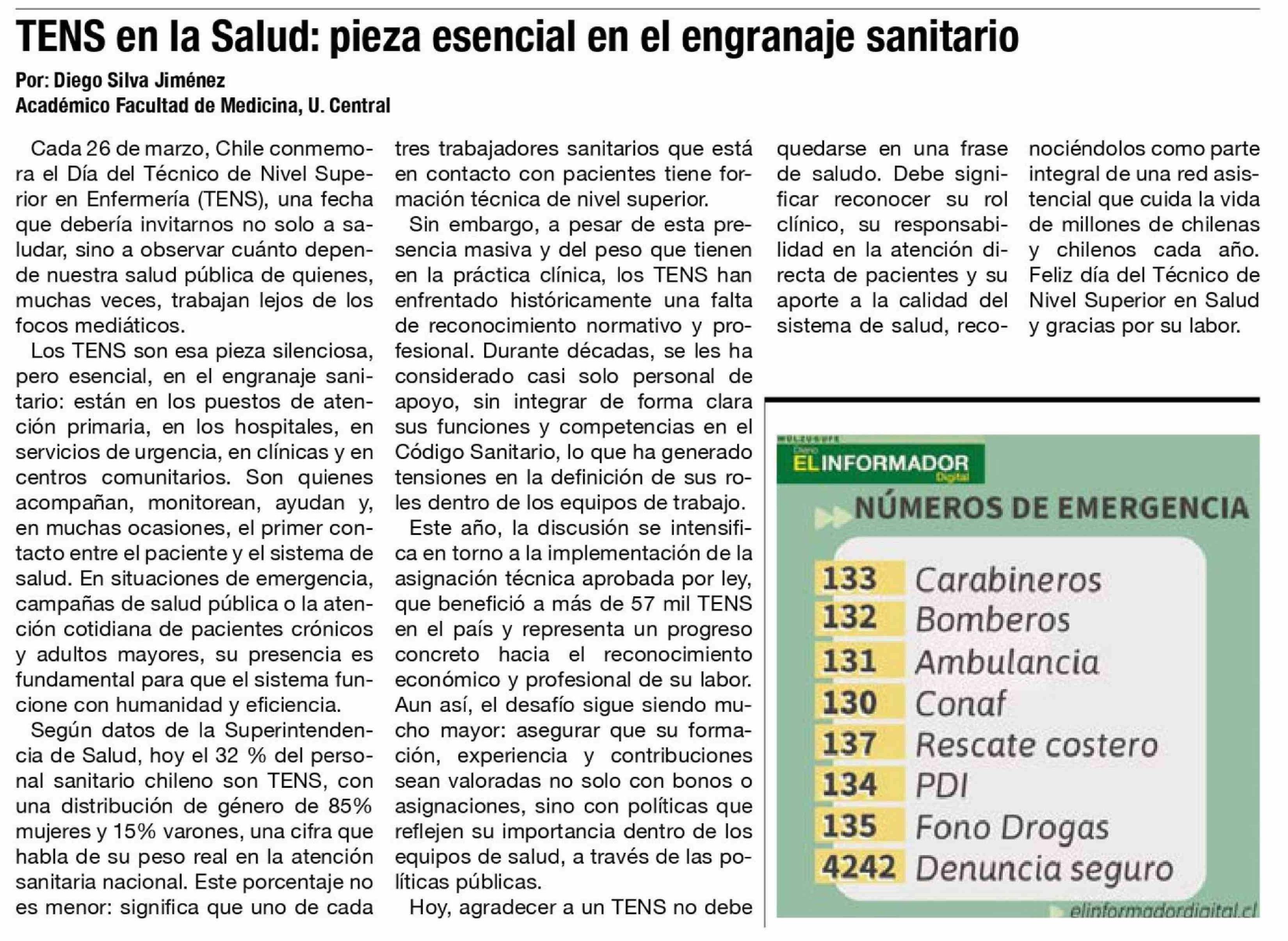 Columnas de Opinión: TENS en la Salud: pieza esencial en el engranaje sanitario