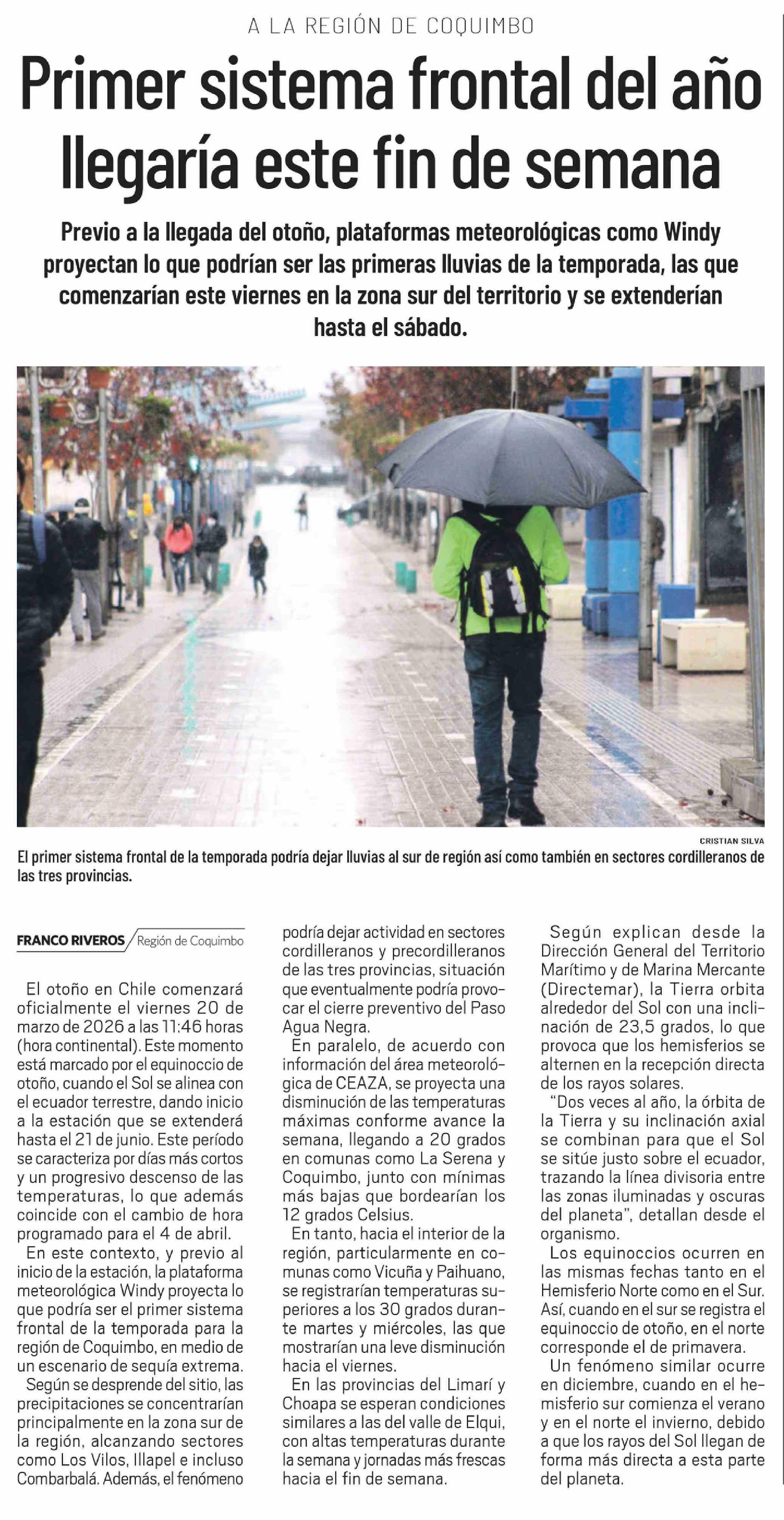 Primer sistema frontal del año llegaría este fin de semana