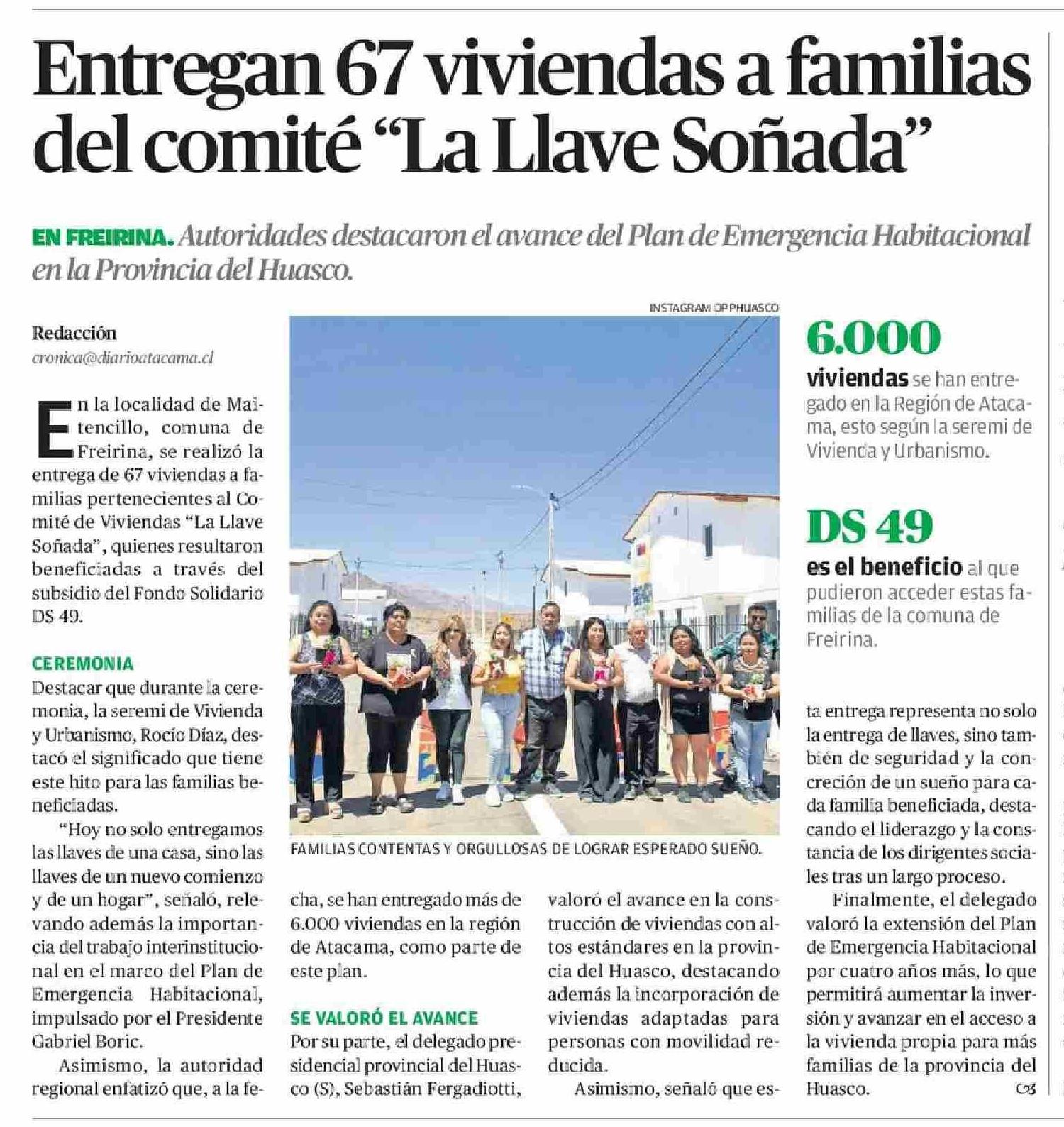 Entregan 67 viviendas a familias del comité "La Llave Soñada"
